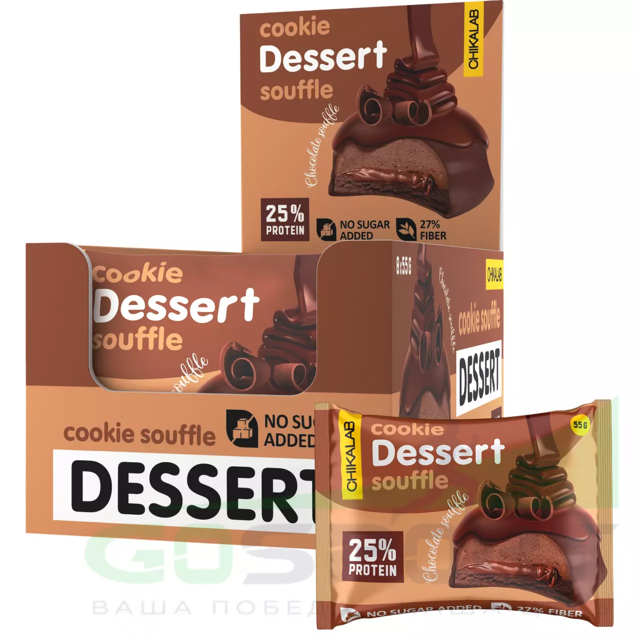 Печенье глазированное с начинкой и суфле 8 x 55 г, Шоколадный десерт
