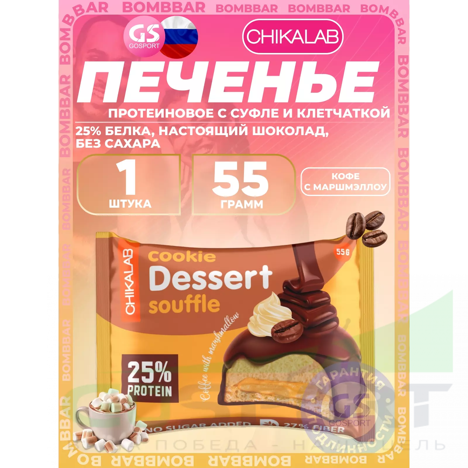 Chikalab Печенье глазированное 55 г, Кофе с маршмэллоу — Полезный и питательный перекус