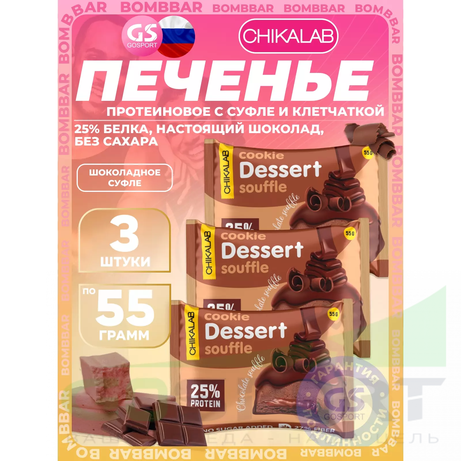 Chikalab Печенье глазированное 3 х 55 г, Шоколадное суфле — Полезный и питательный перекус