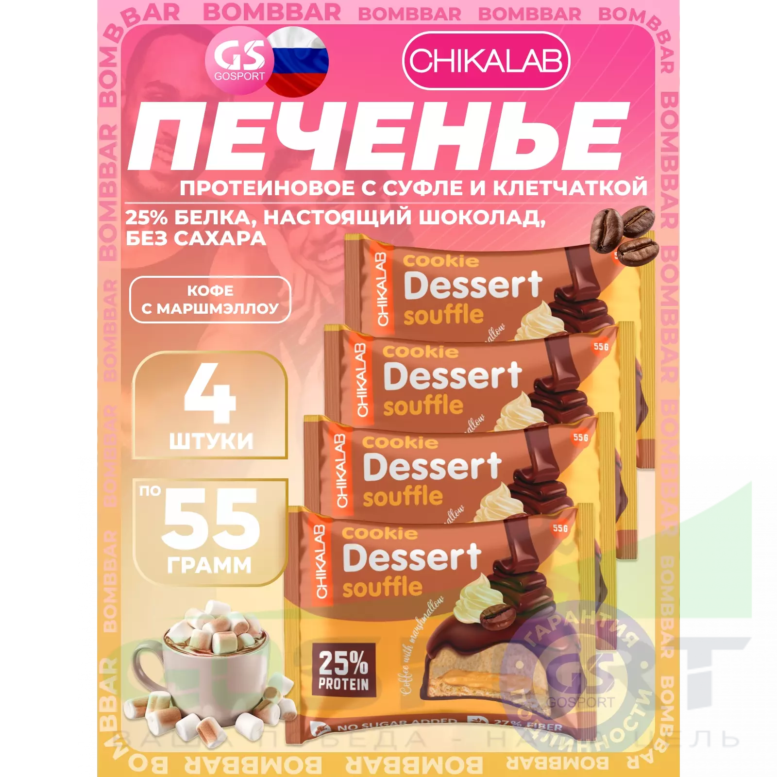 Chikalab Печенье глазированное 4 x 55 г, Кофе с маршмэллоу — Полезный и питательный перекус
