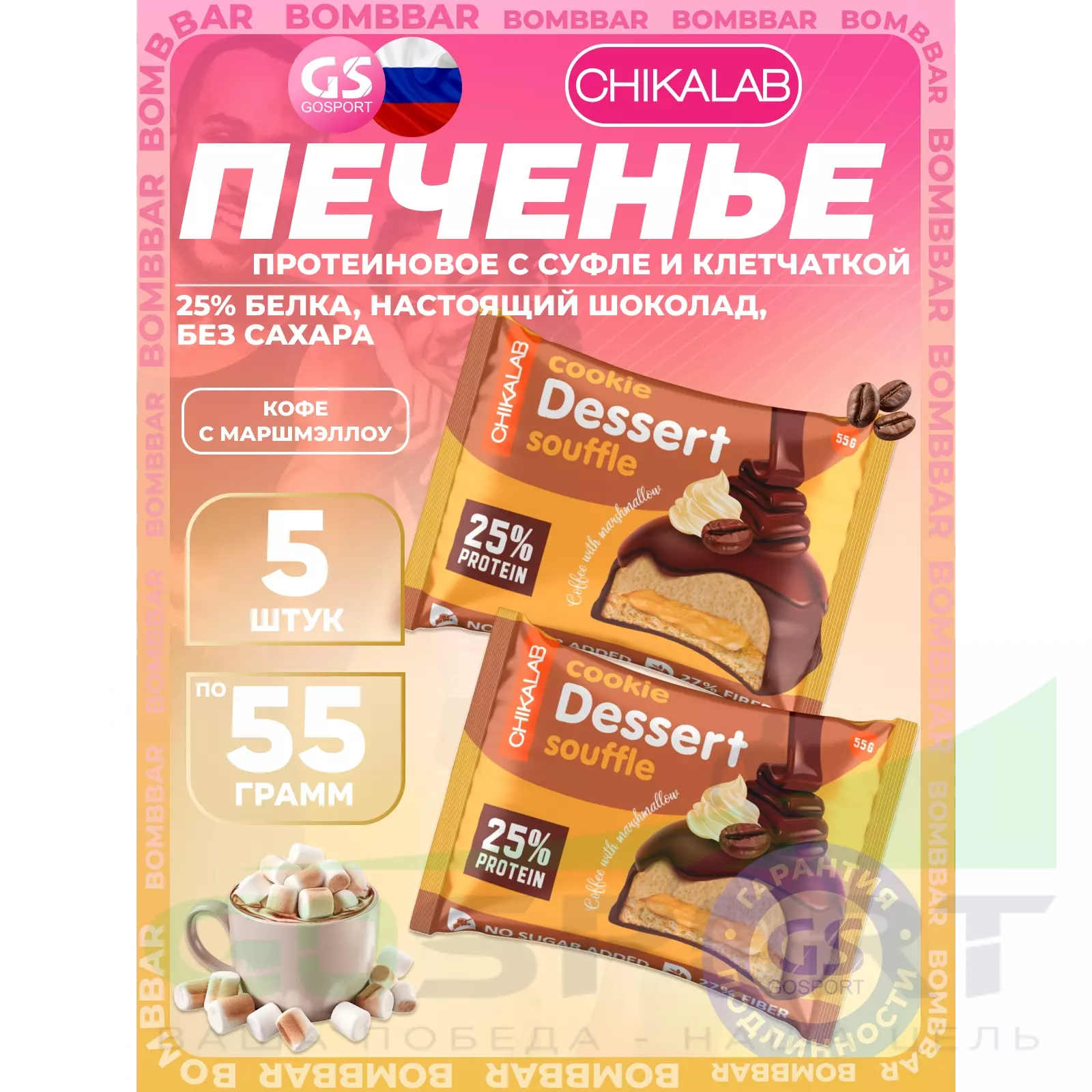 Chikalab Печенье глазированное 5 x 55 г, Кофе с маршмэллоу — Полезный и питательный перекус