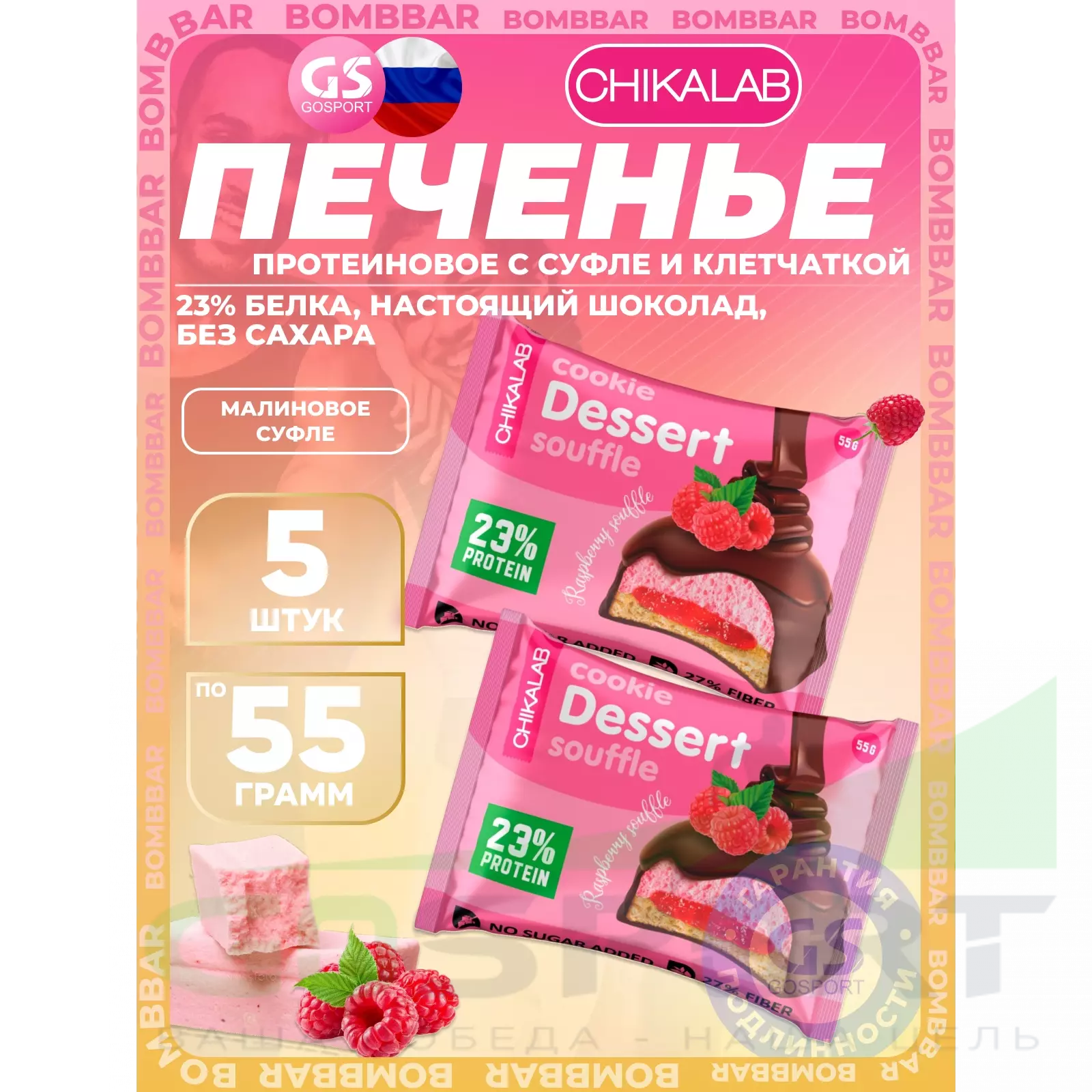 Chikalab Печенье глазированное 5 x 55 г, Малиновое суфле — Полезный и питательный перекус