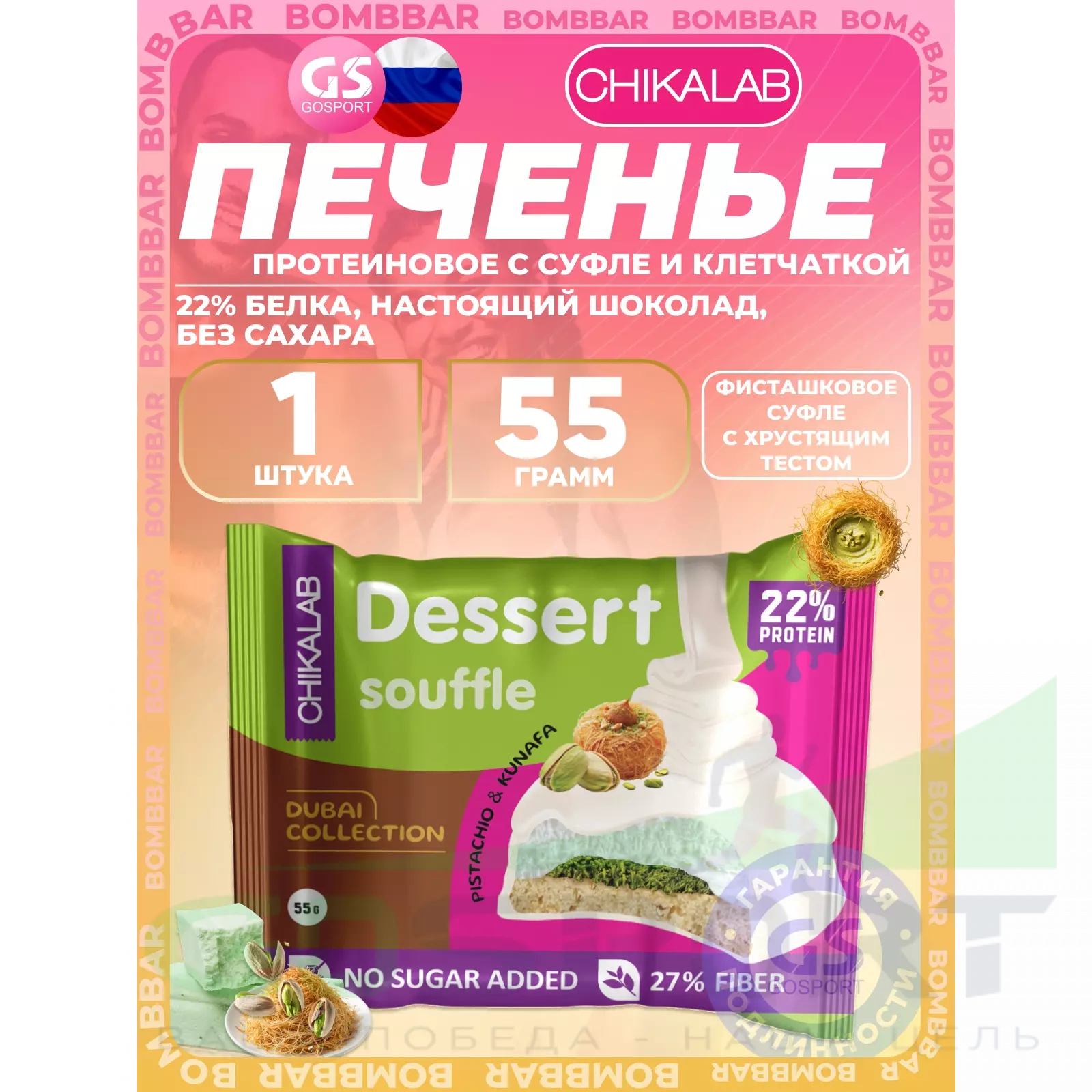 Chikalab Печенье глазированное 55 г, Фисташковое суфле с хрустящим тестом — Полезный и питательный перекус
