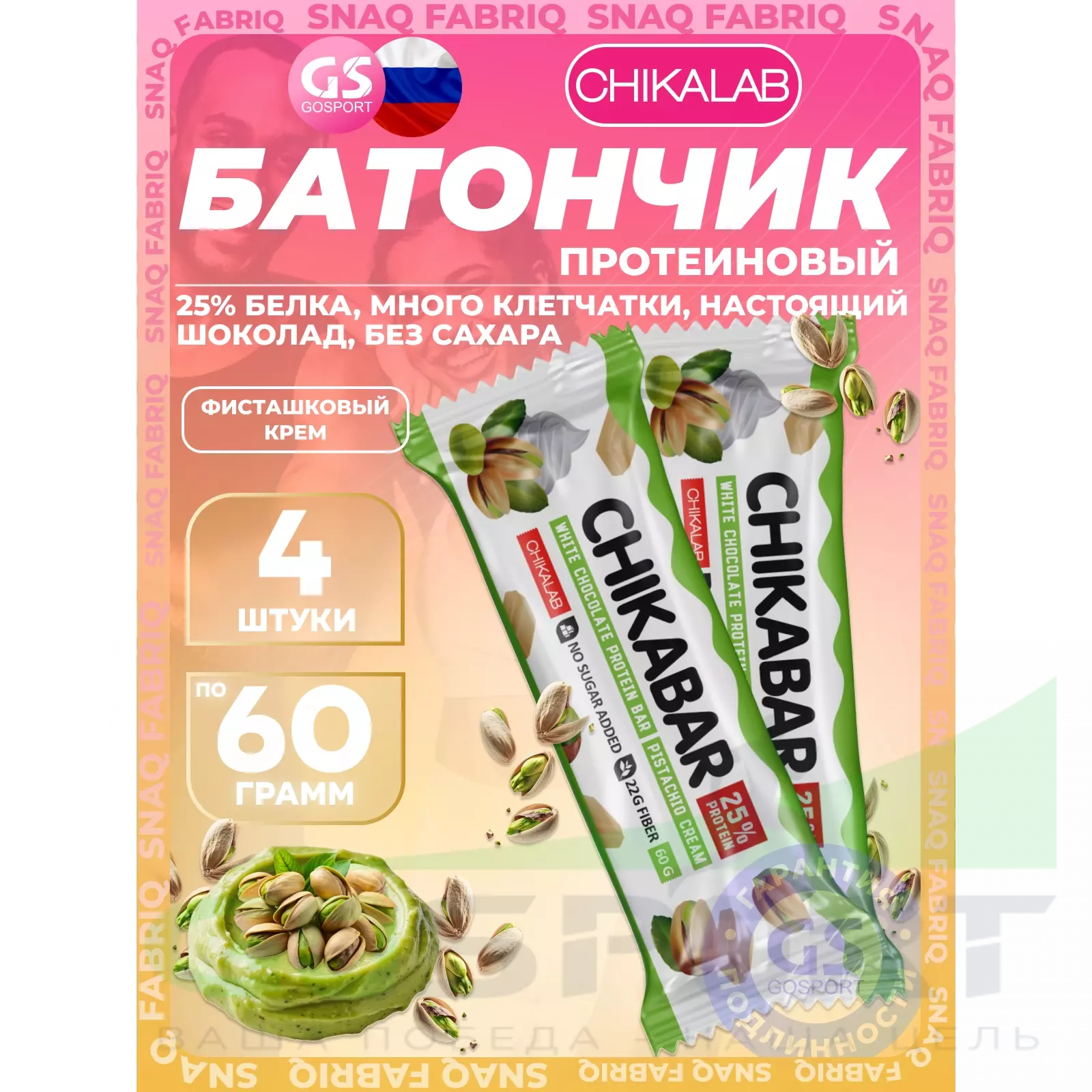 Chikalab Chikabar 4 x 60 г, Фисташковый крем — Полезный перекус и поддержка мышц