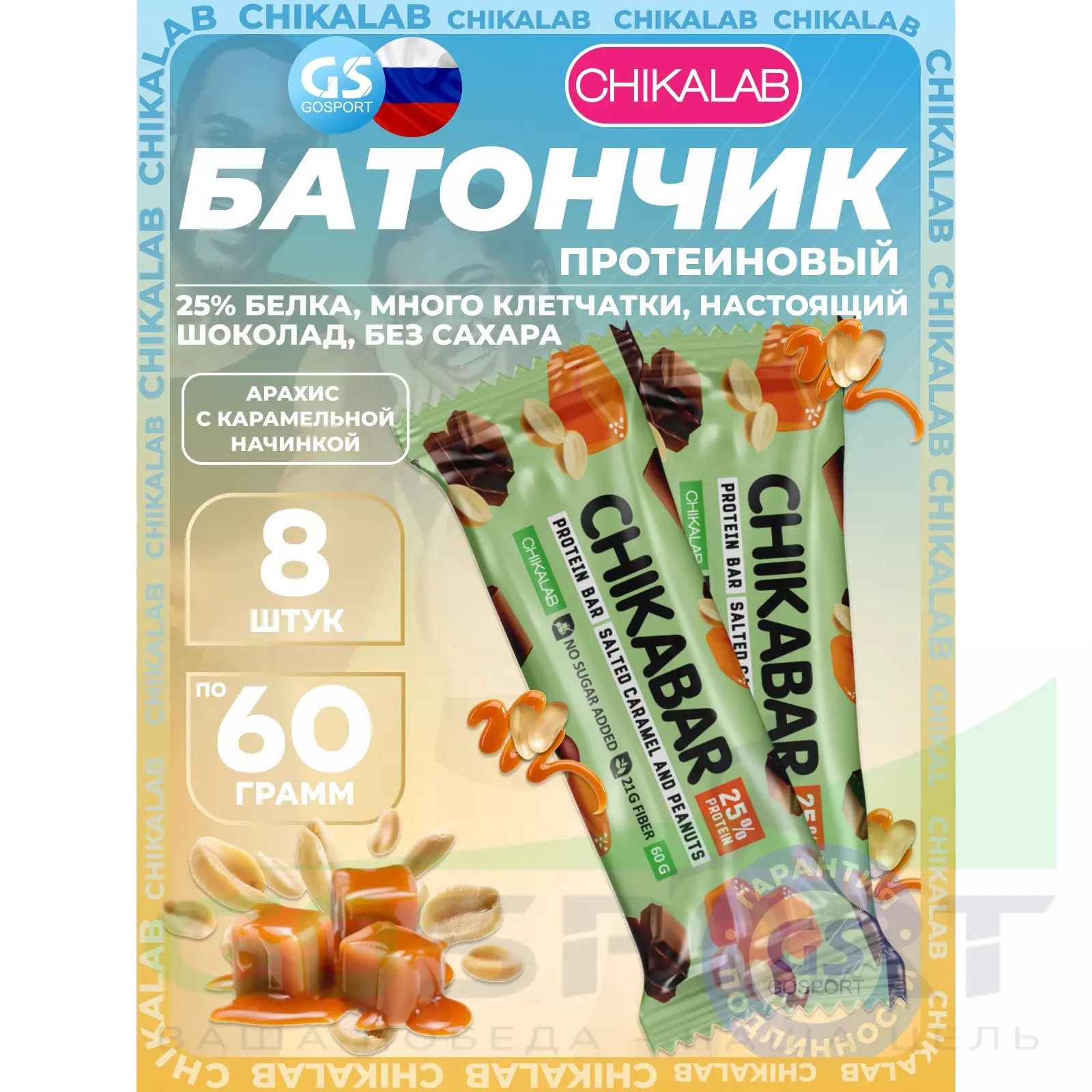 Chikabar 8 x 60 г, Арахис с карамельной начинкой