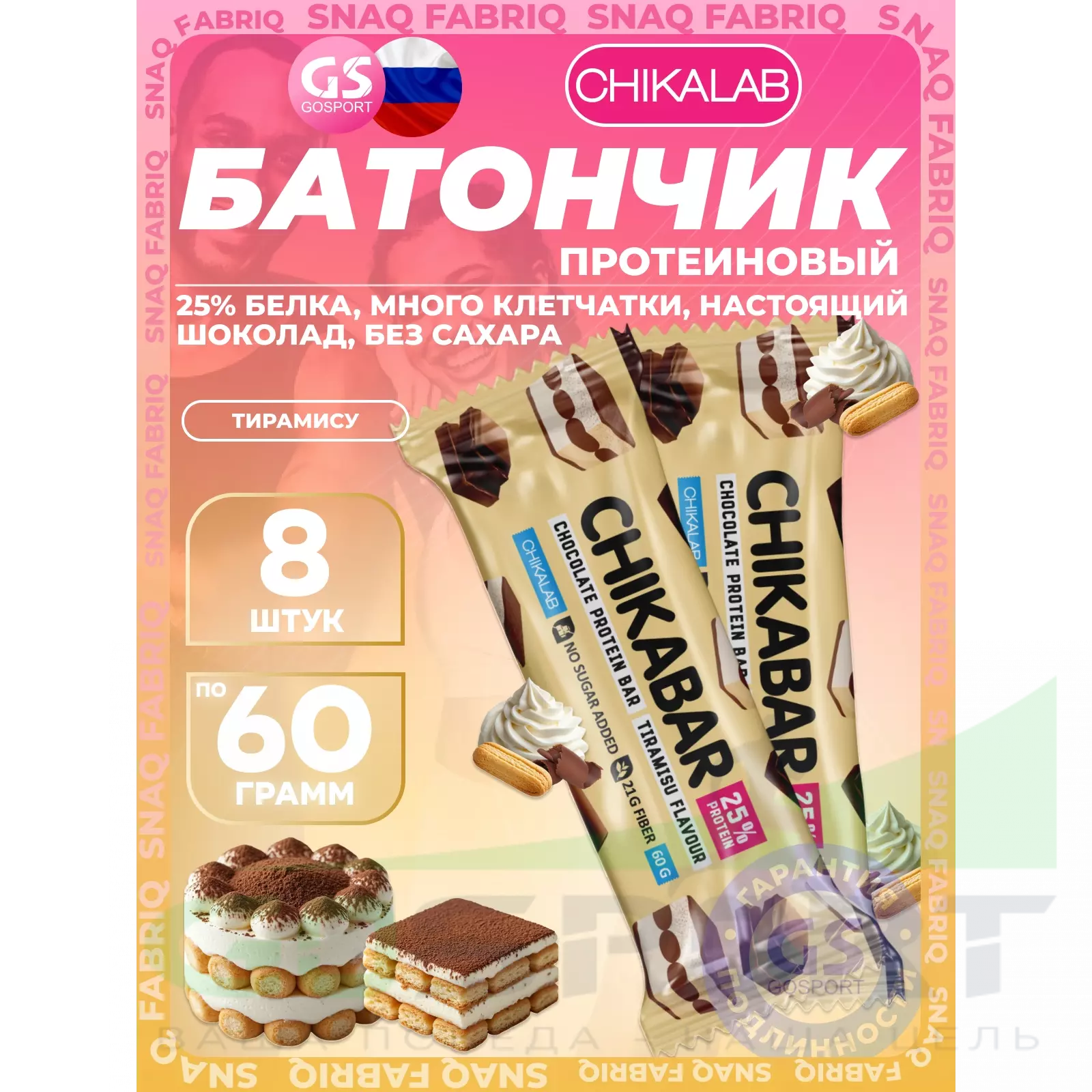 Chikalab Chikabar 8 x 60 г, Тирамису — Полезный перекус и поддержка мышц