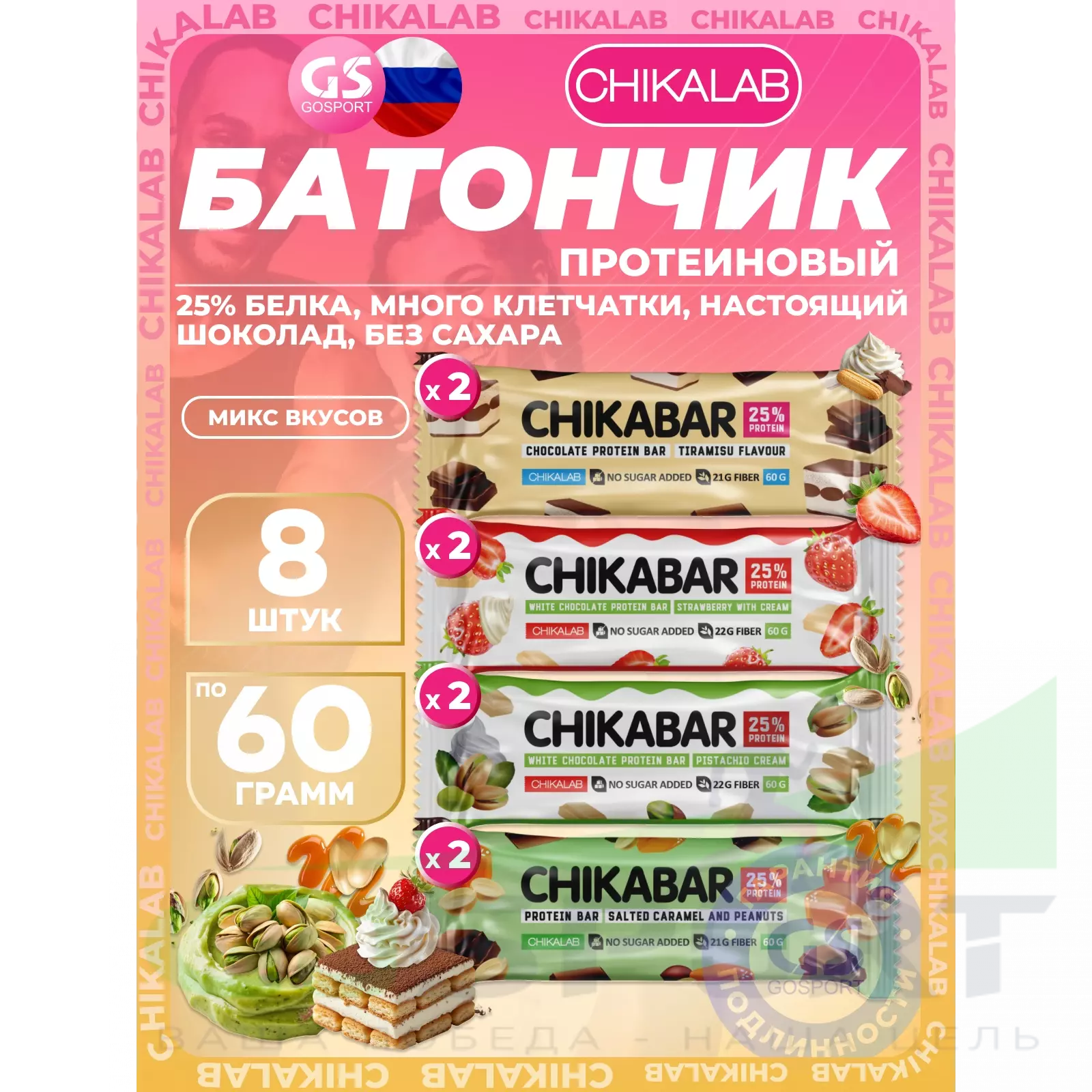 Chikalab Chikabar 8 x 60 г Ассорти, Микс 1 — Полезный перекус и поддержка мышц
