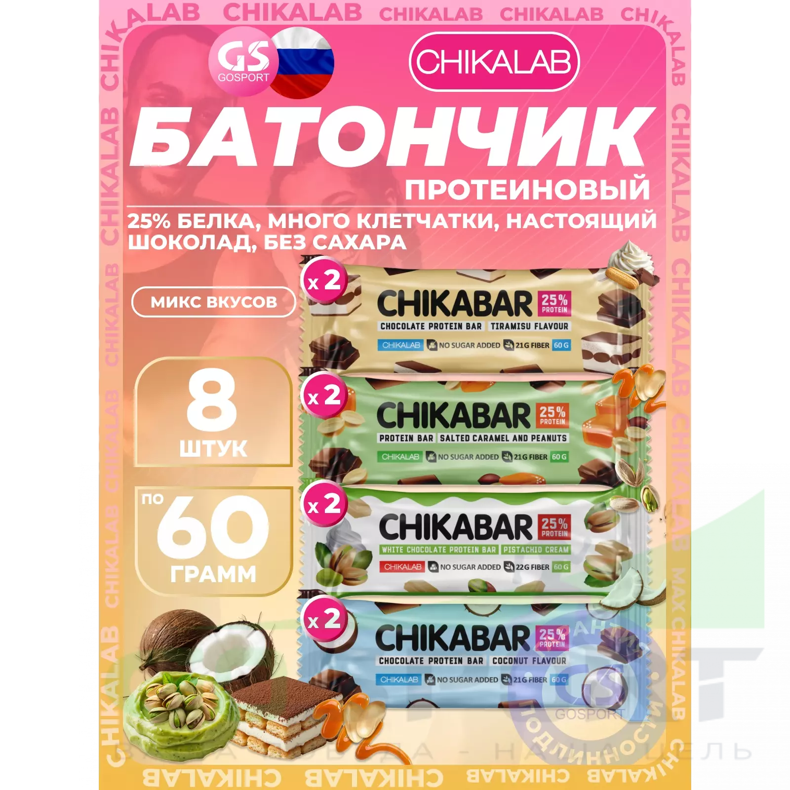 Chikalab Chikabar 8 x 60 г Ассорти, Микс 5 — Полезный перекус и поддержка мышц