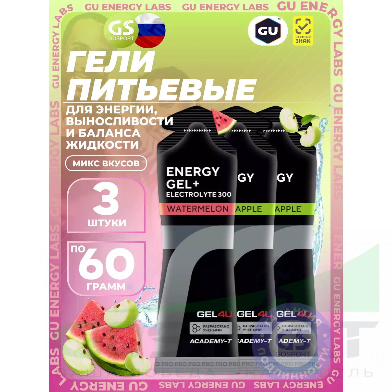GEL4U Energy Gel MIX 3 x 60 г, Яблоко, Арбуз — Энергия, выносливость и баланс жидкости