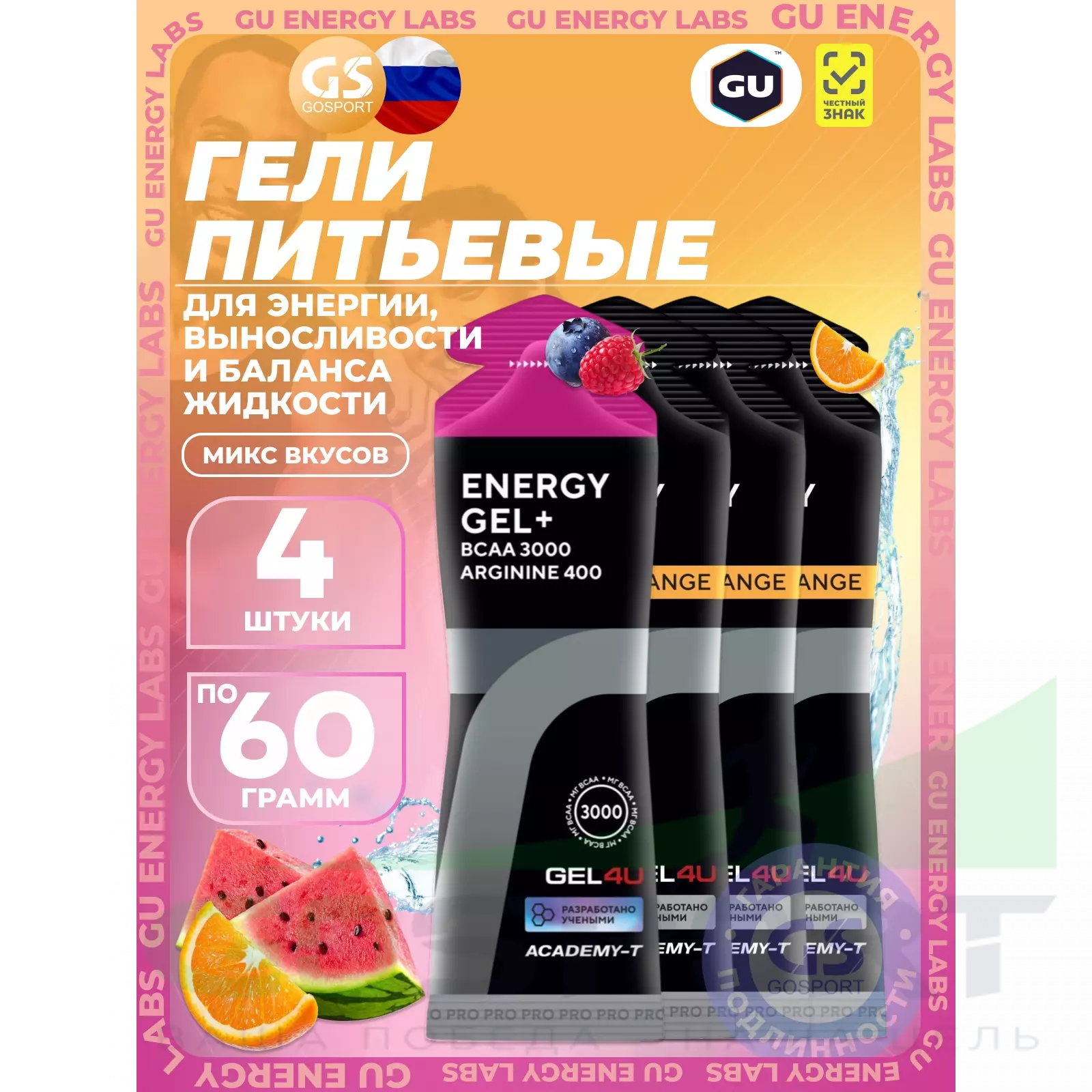 Energy Gel 4 х 60 г, Лесные ягоды, апельсин