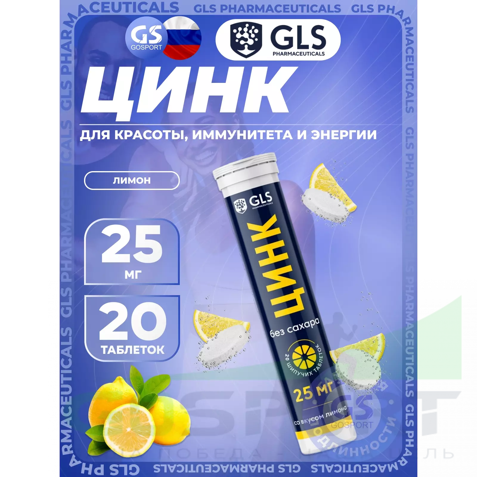 GLS pharmaceuticals Цинк 25 мг, без сахара 20 шипучих таблеток, Лимон — Для иммунитета, волос, кожи и ногтей
