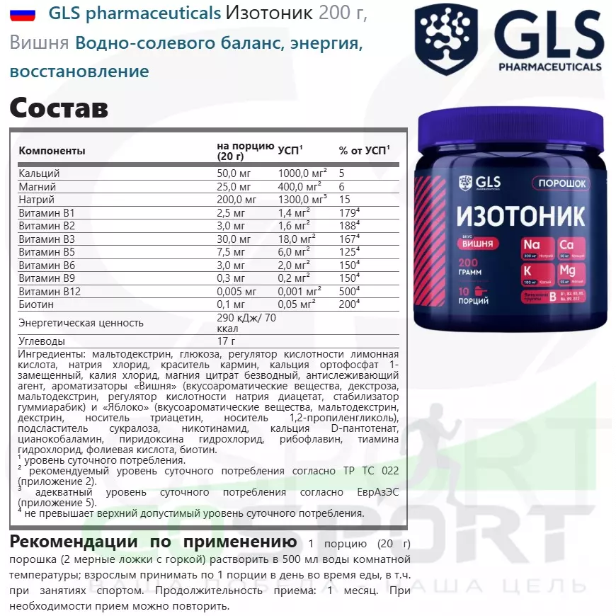 GLS pharmaceuticals Изотоник 200 г, Вишня — Водно-солевого баланс, энергия, восстановление