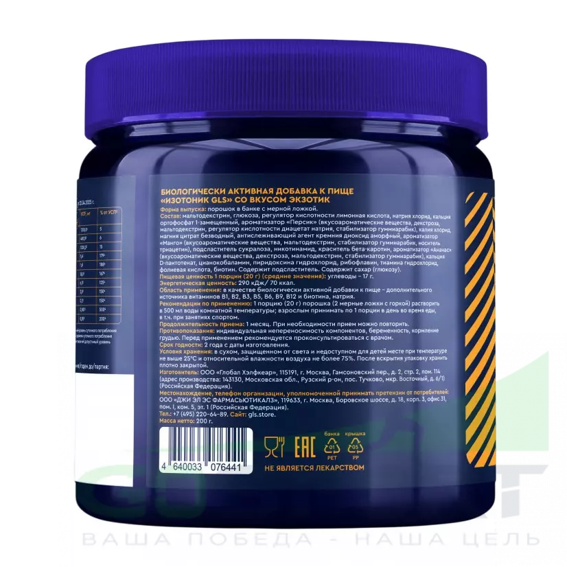 GLS pharmaceuticals Изотоник 200 г, Экзотик — Водно-солевого баланс, энергия, восстановление