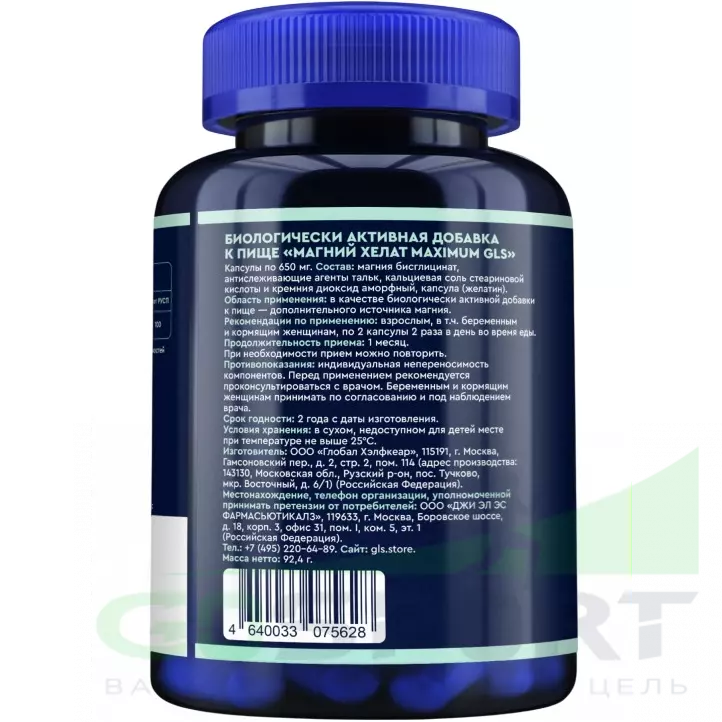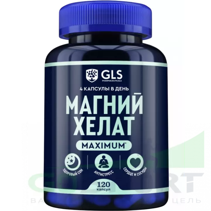 GLS pharmaceuticals Магний хелат maximum 200 мг 120 капсул — Поддержка мышц, снижение стресса, улучшение сна