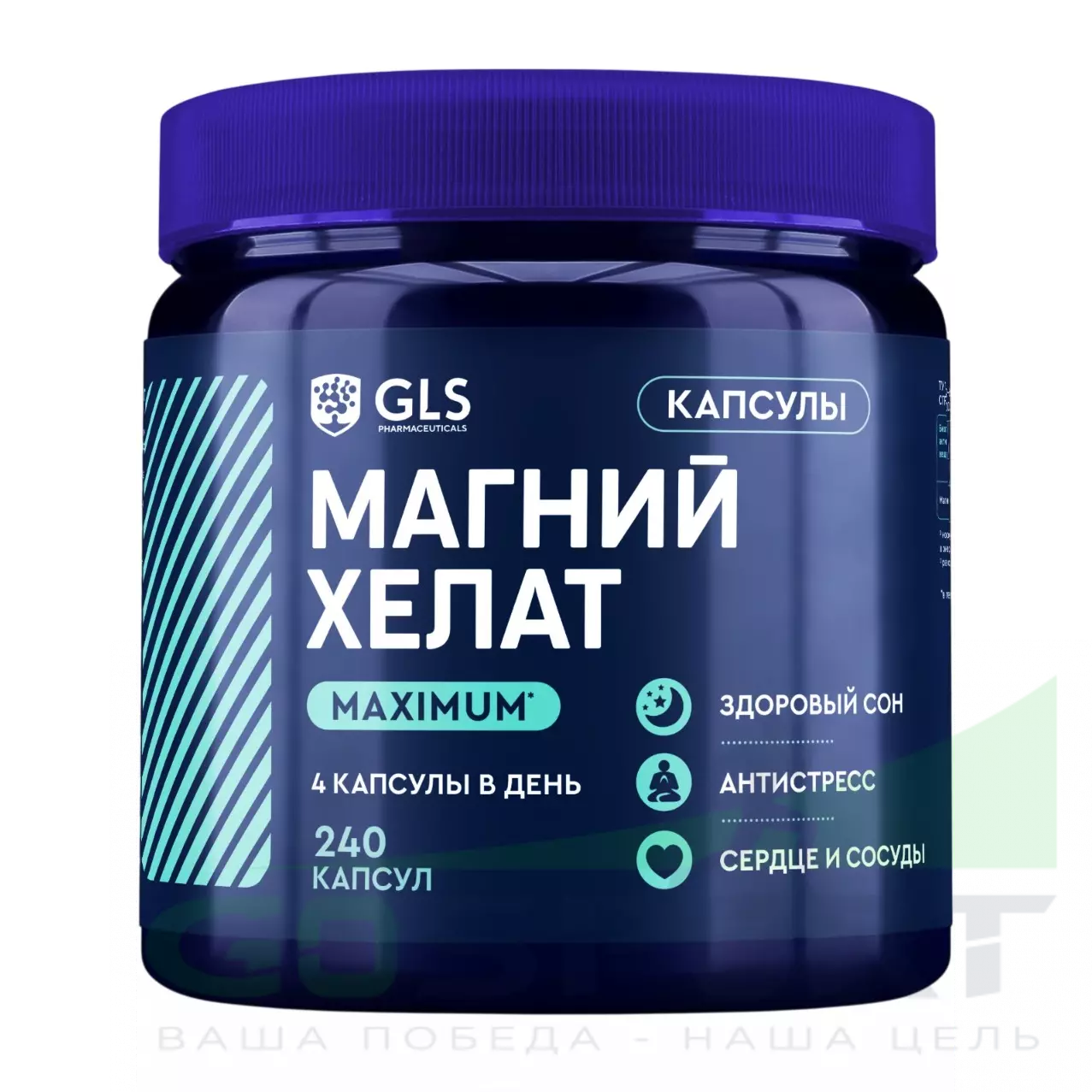 GLS pharmaceuticals Магний хелат maximum 200 мг 240 капсул — Поддержка мышц, снижение стресса, улучшение сна
