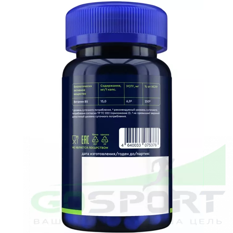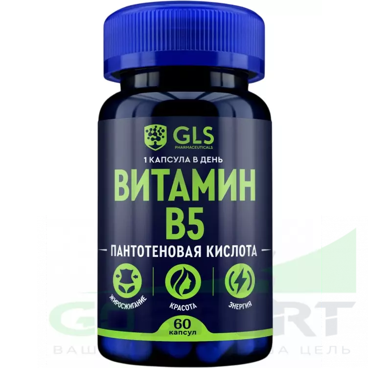 GLS pharmaceuticals Витамин B5 (пантотеновая кислота) 60 капсул — Красота, энергия и жиросжигание