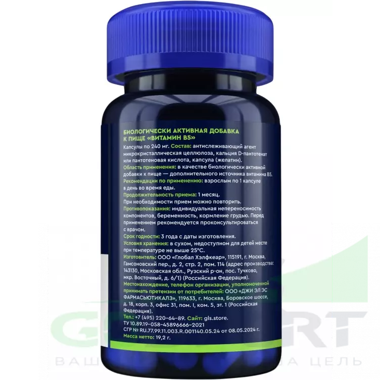 Состав GLS pharmaceuticals Витамин B5 (пантотеновая кислота)