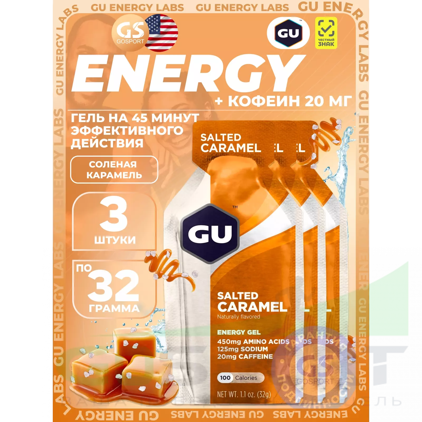 GU Original Energy Gel 20mg caffeine 3 x 32 г, Соленая карамель