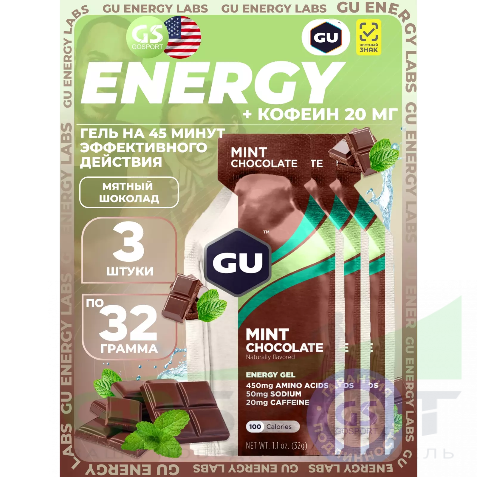 GU Original Energy Gel 20mg caffeine 3 x 32 г, Мятный шоколад