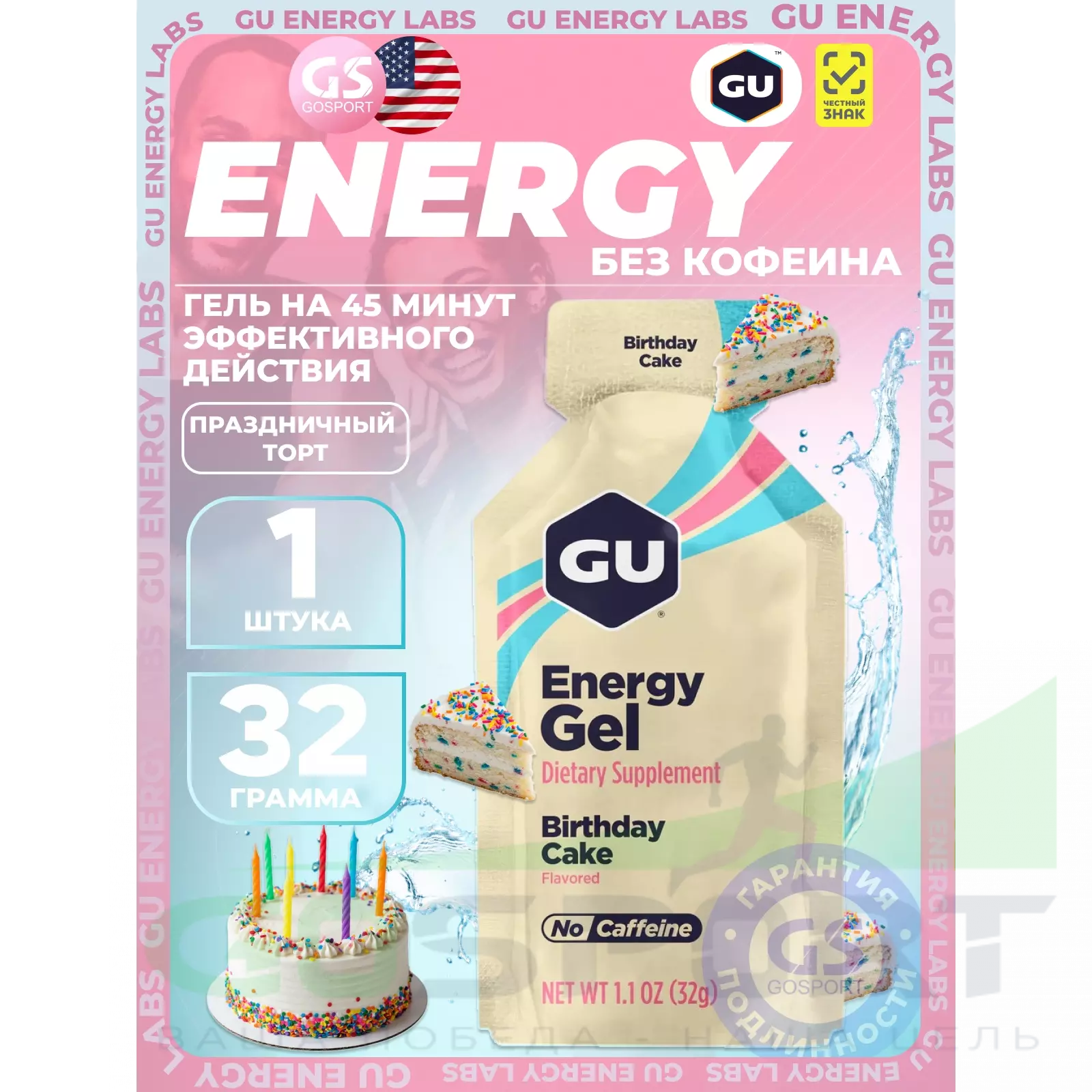 GU Energy Labs GU Original Energy Gel no caffeine 32 г, Праздничный торт — Высокая калорийность, два вида углеводов, лёгкий
