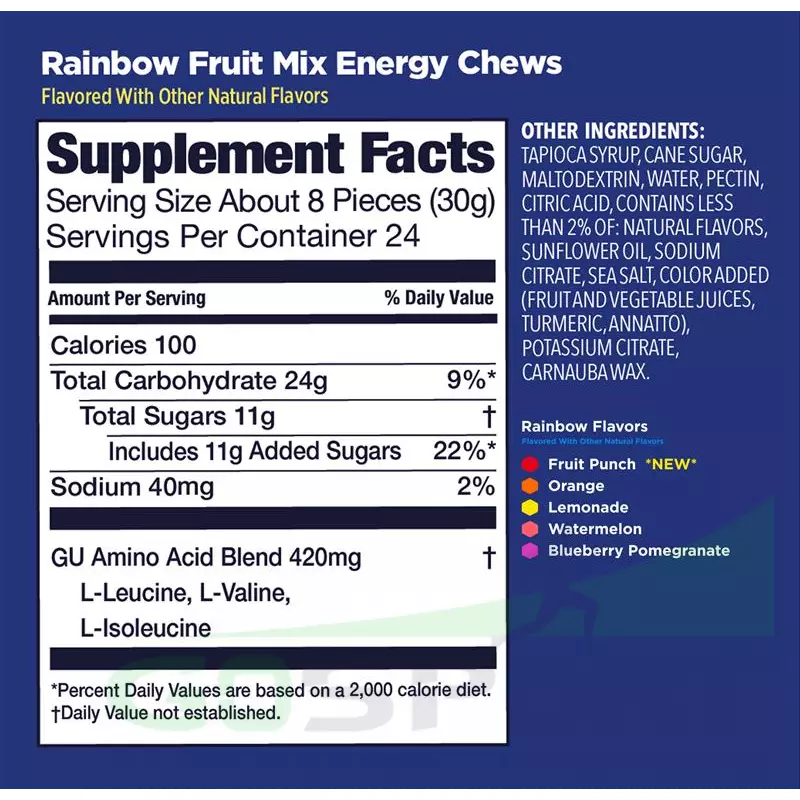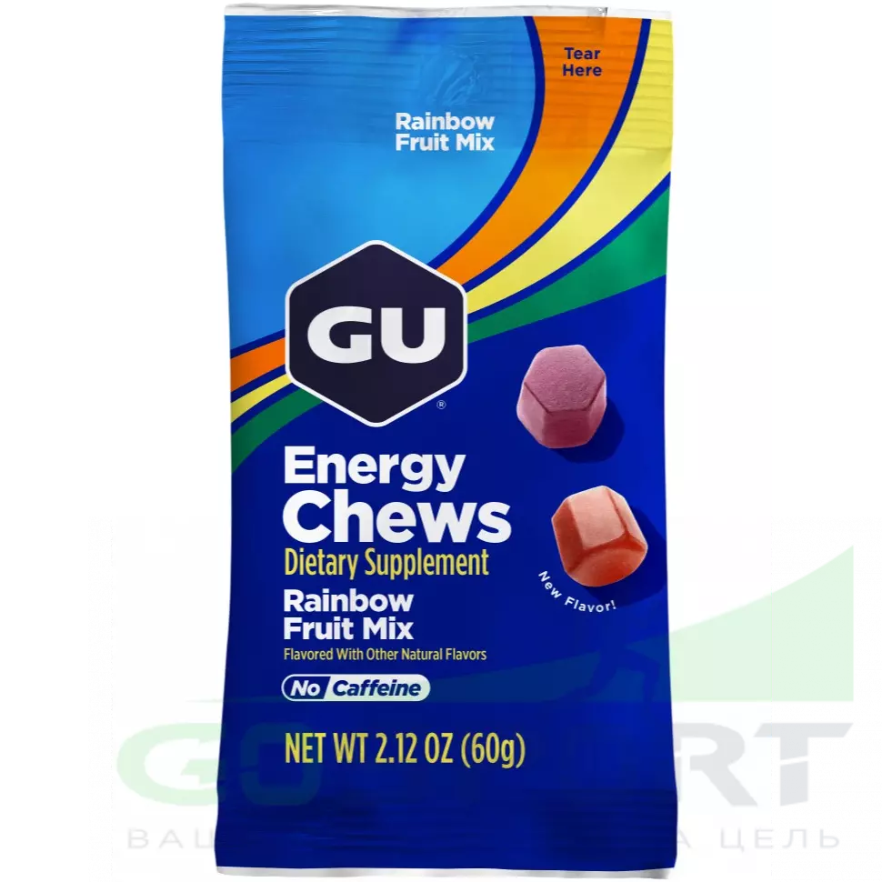GU Energy Labs Мармеладки Energy Chews 60 г, Радужный фруктовый микс — Быстрое и длительное снабжение энергией