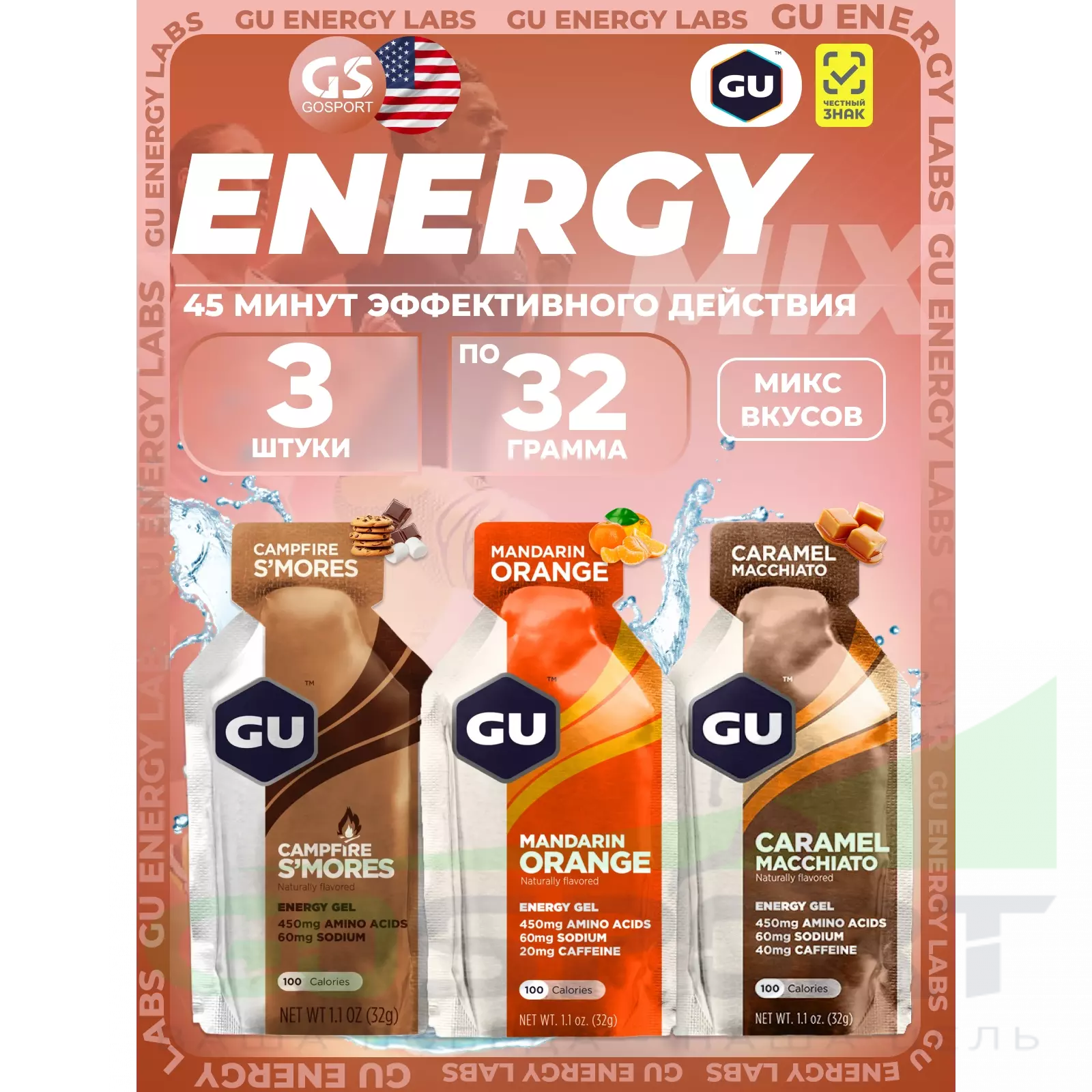 GU Energy Labs Gel MIX 3 x 32 г, Микс №10 — Для выносливости и водно-солевого баланса
