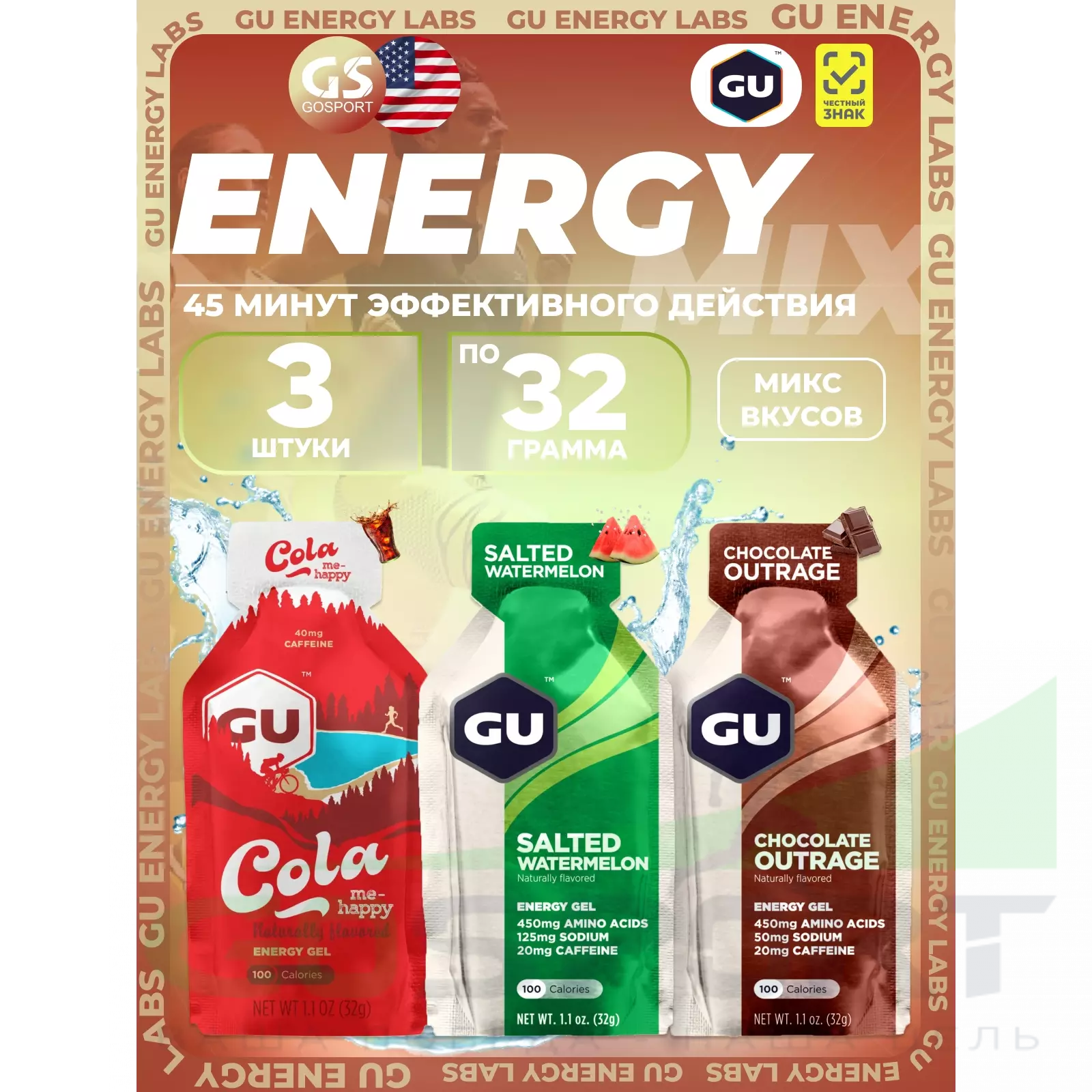 GU Energy Labs Gel MIX 3 x 32 г, Микс №3 — Для выносливости и водно-солевого баланса