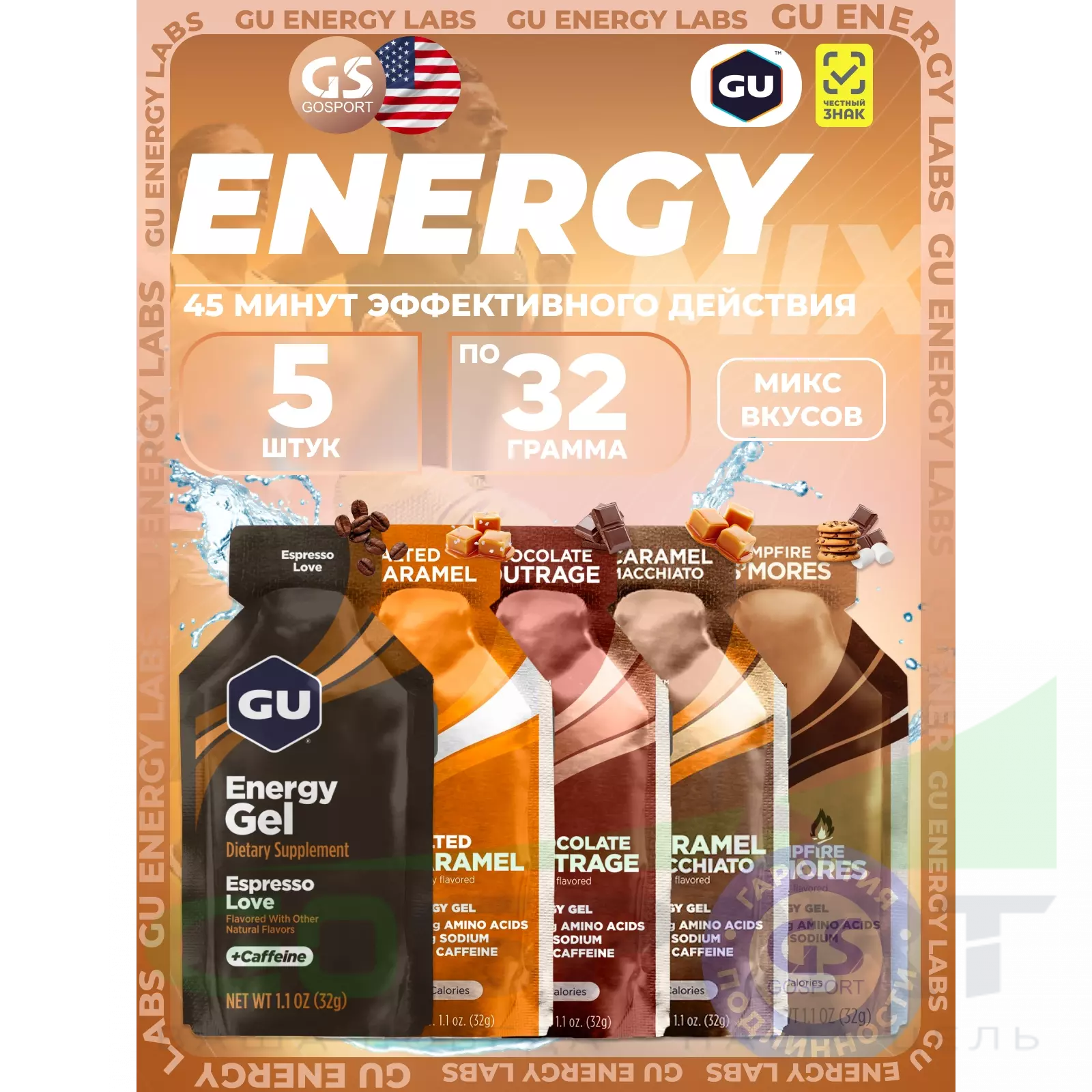 GU Energy Labs Gel MIX 5 x 32 г, Микс №28 — Для выносливости и водно-солевого баланса