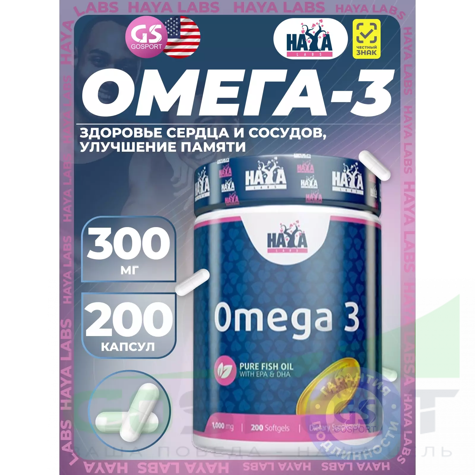 HAYA LABS Омега 3 содержит рыбий жир, который является естественным источником незаменимых жирных кислот Омега 3 (EPA и DHA). Препарат может снижать высокое кровяное давление, укрепляет кровеносные сосуды и повышает уровень хорошего (HDL) холестерина и триглицеридов. Препарат усиливает функцию сердца, предотвращает накопление налета в артериях, и уменьшает вероятность сердечно-сосудистых заболеваний, таких как сердечная недостаточность, кардиомиопатия, и инсульт.