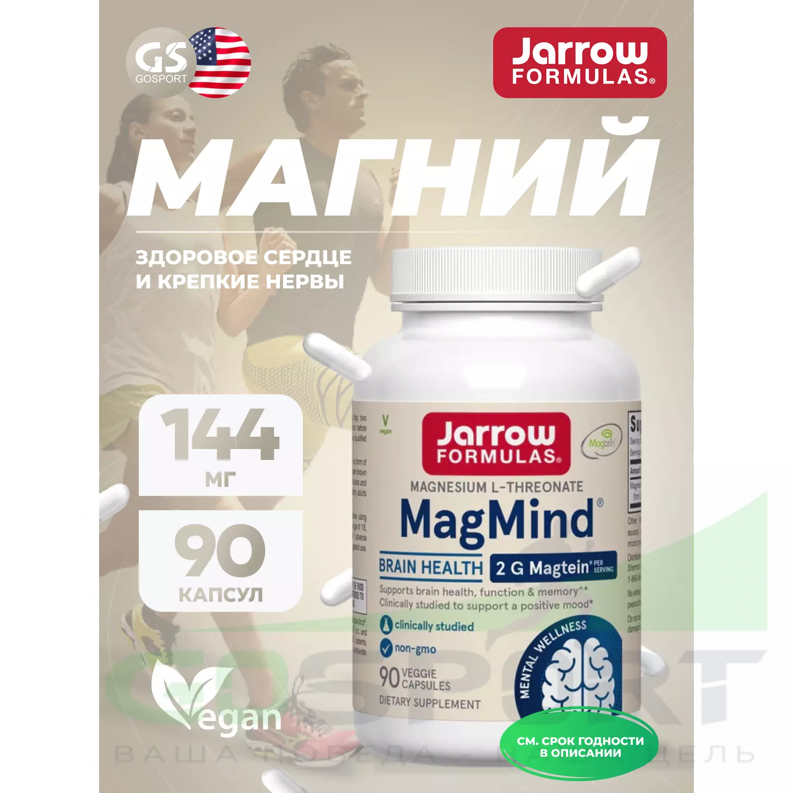 Препарат Jarrow Formulas MagMind, содержащий Magtein®, представляет собой форму магния из L-треоната магния, которая легко проникает через гематоэнцефалический барьер и поддерживает здоровье, функции и память мозга у здоровых взрослых людей.