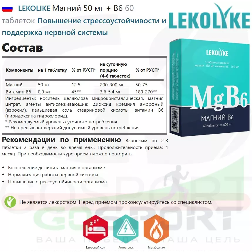 - Магний B6 повышает стрессоустойчивость.