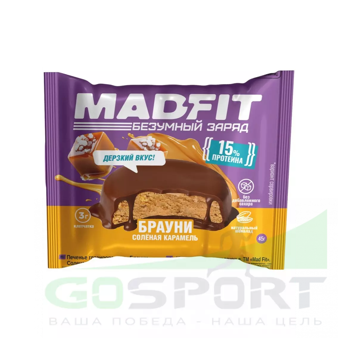 Протеиновый батончик Madfit Печенье глазированное "Брауни" 45 г, Соленая карамель