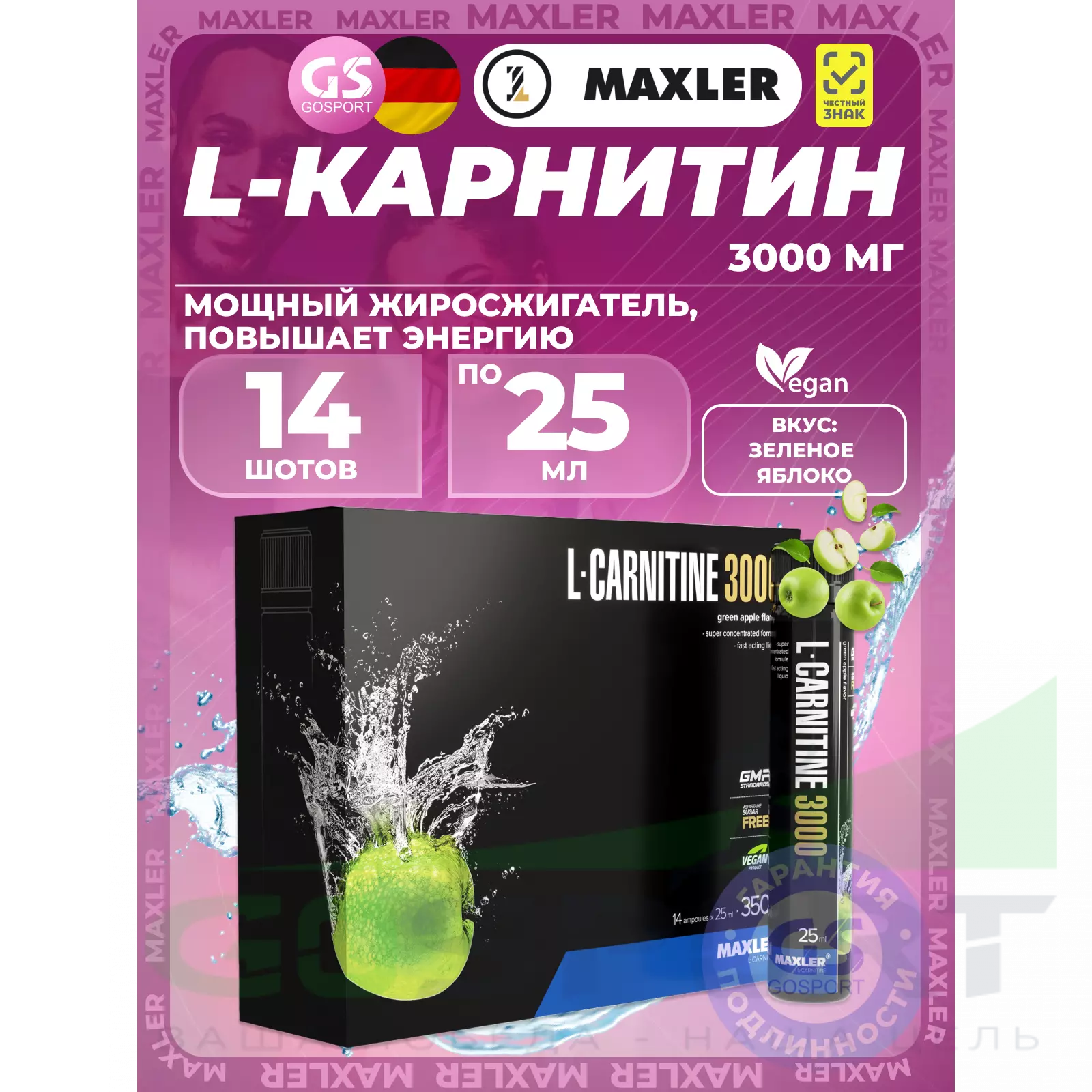 L-Carnitine 3000 mg 14 x 25 мл, Зеленое яблоко