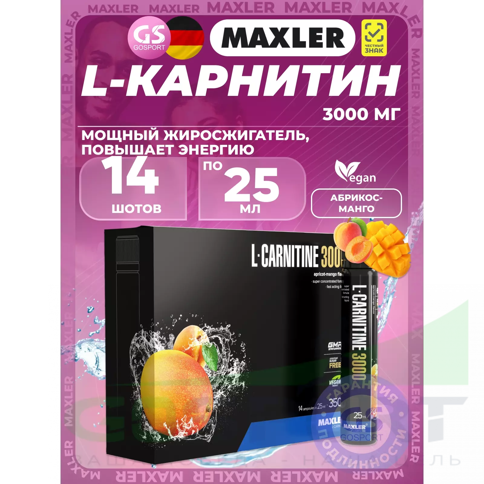 L-Carnitine 3000 mg 14 x 25 мл, Абрикос-манго