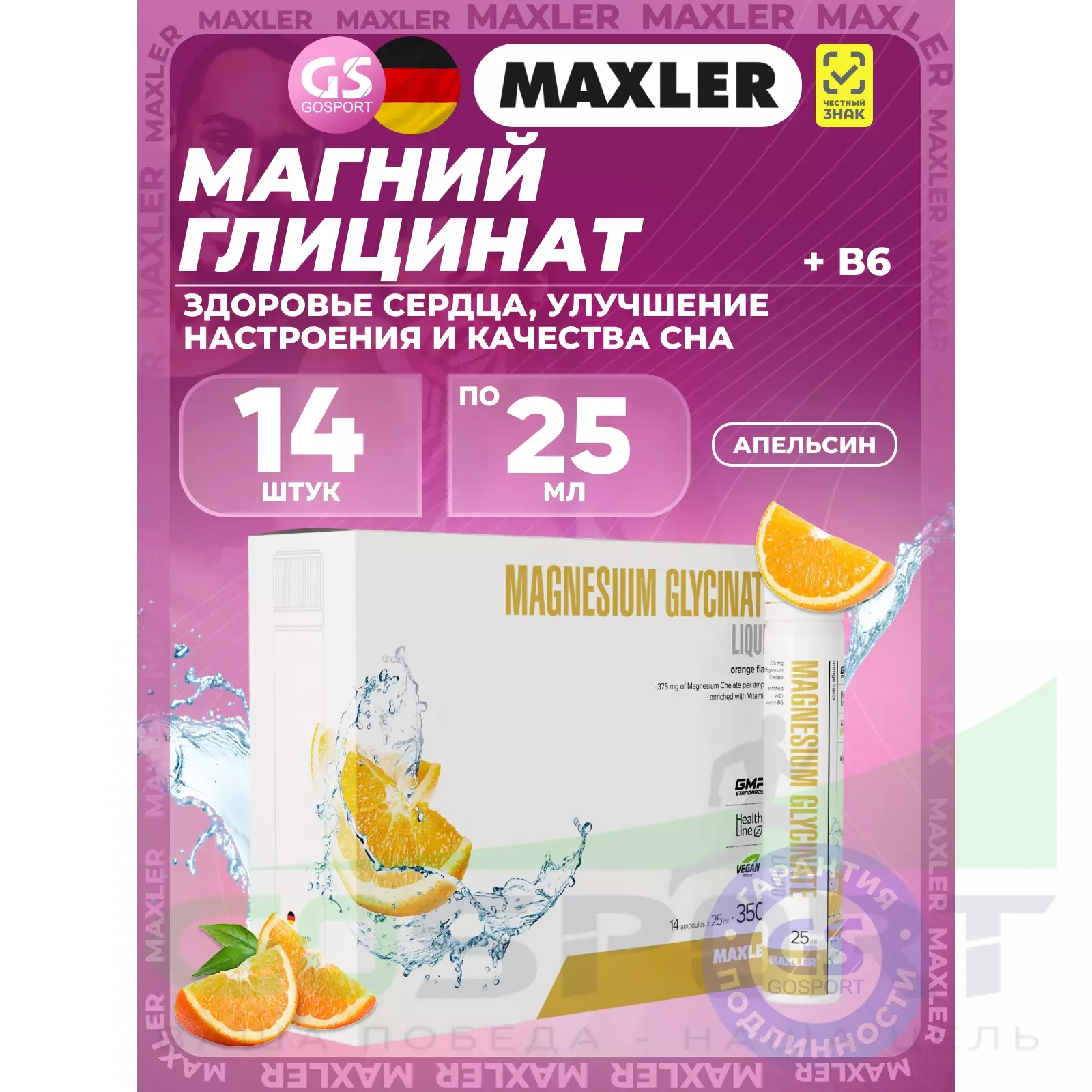 MAXLER Magnesium Glycinate Liquid 14 x 25 мл, Апельсин — Здоровье сердца, улучшение настроения и качества сна