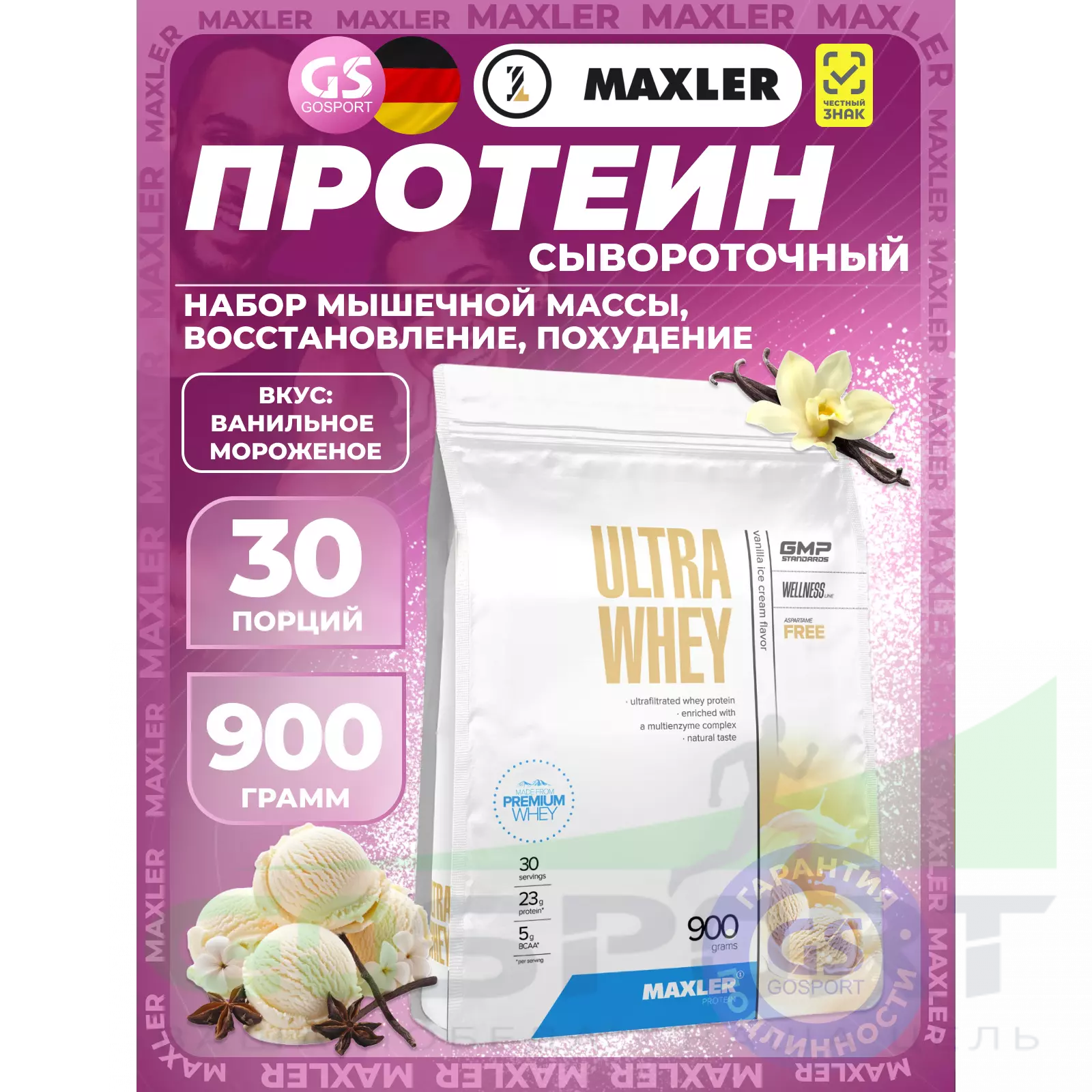 MAXLER Ultra Whey 900 г, Ванильное мороженное — Для роста и восстановления мышц