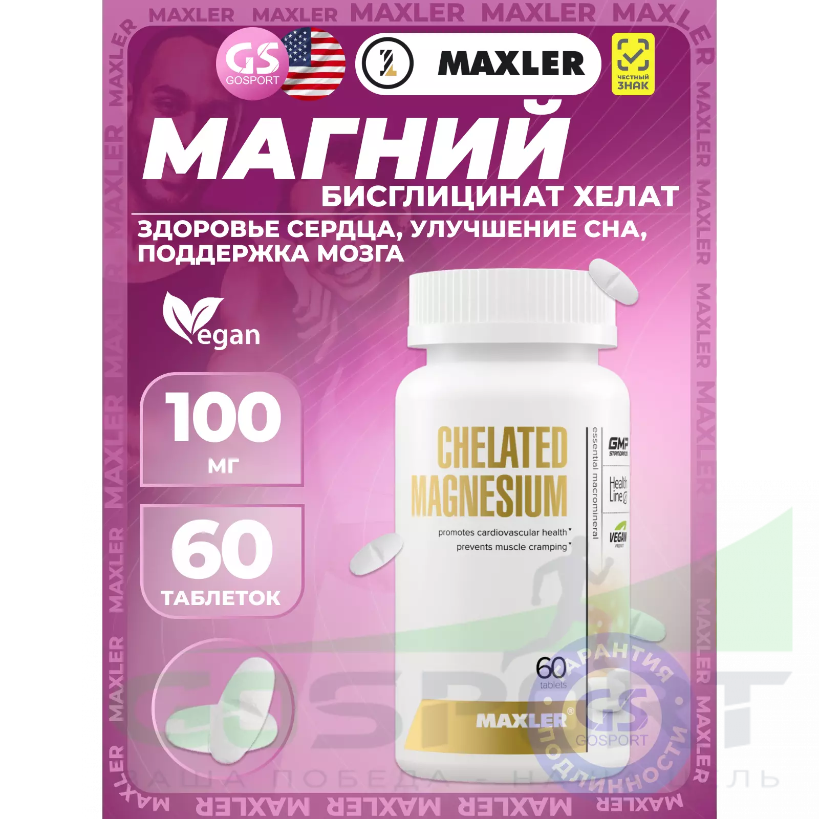 MAXLER Chelated Magnesium 100 mg 60 таблеток — Поддерживает сердечно-сосудистую систему