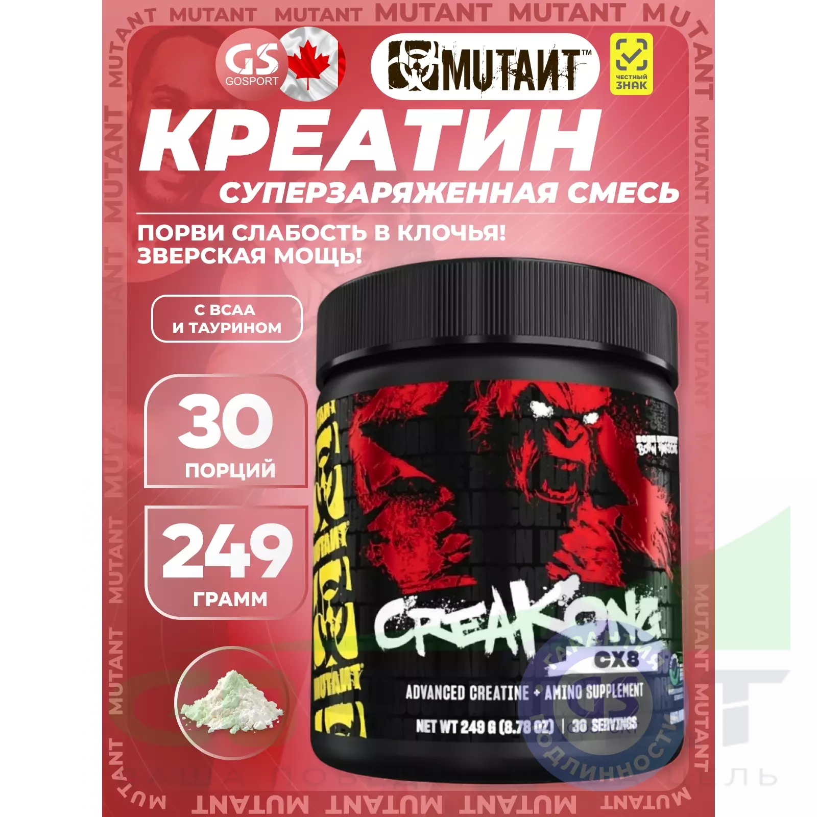 Новый CX8 Edition MUTANT CREAKONG содержит оригинальную мощную 4-граммовую креатиновую матрицу и дополняет ее дополнительной большой дозой из 4 аминокислот для наращивания мышечной массы и повышения производительности! И это еще не все: добавлены 3 аминокислоты, синтезирующие креатин, чтобы стимулировать усвоение. Эта тройная плюс поднимающей ваш Синтез Белка на Силу + Мышцы Унася Вас за пределы того, что мог бы сделать любой обычный креатин. Это называется технология CSM (матрица синтеза креатина). Triple Powered Creatine Turbo заряжает мышцы жизненно важными аминокислотами. Mutant Creakong - уникальный креатиновый комплекс, который предназначен для наращивания мышечной массы. В состав креатинового комплекса входят три запатентованные, формы креатина: Креатин моногидрат, Креатин малат, Креатин-магниевый хелат. Количество порций 30, в 1 порции (1 чайная ложка) 8.3 г. BCAA - Смесь аминокислот (Таурин-813 мг, быстрорастворимый порошок BCAA 2:1:1 (L-лейцин, L-изолейцин, L-валин))-1415 мг, КСА (Аминокислоты синтеза креатина) (Глицин-813 мг, L-аргинин, L-метионин)-994 мг. Ингредиентный состав: креатина моногидрат, таурин, глицин, L-лейцин, L-изолейцин, L-валин, L-аргинин, L-метионин, эмульгатор: лецитин. Информация об аллергенах: изготовлено на производстве, которое обрабатывает ингредиенты из молока, сои, рыбы (коллаген), древесных орехов (кокос). % от РСП: Таурин-203, Глицин-23. • Увеличение силы, мощности и выносливости | В ходе многочисленных исследований было клинически доказано, что креатин увеличивает силу, мощность и выносливость, а также дает другие значительные преимущества для мышц. • Быстро впитывающаяся мультикреатиновая смесь | этот усовершенствованный ускоритель креатина содержит 3 формы легко усваиваемого креатина - моногидрат, малат и хелат магния. • Ноль углеводов, сахара, наполнителей | Результаты и эффективность великолепны, но не в том случае, если они достигаются за счет вашего прогресса в питании. Эта сильная добавка не содержит наполнителей и калорий.