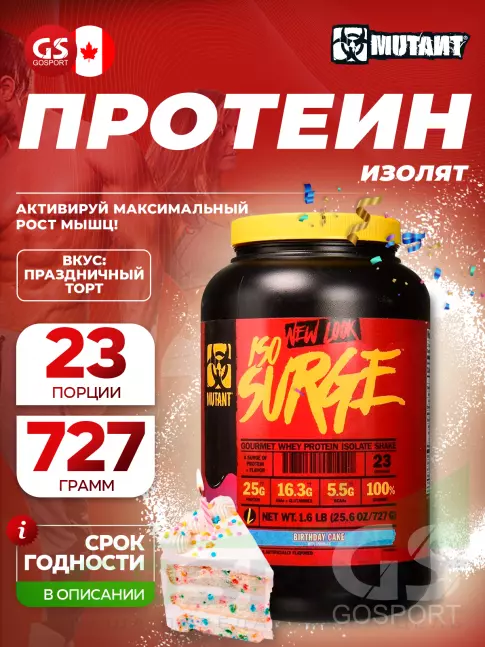 Mutant Iso Surge 727 г, Праздничный торт — Для набора и поддержки мышечной массы