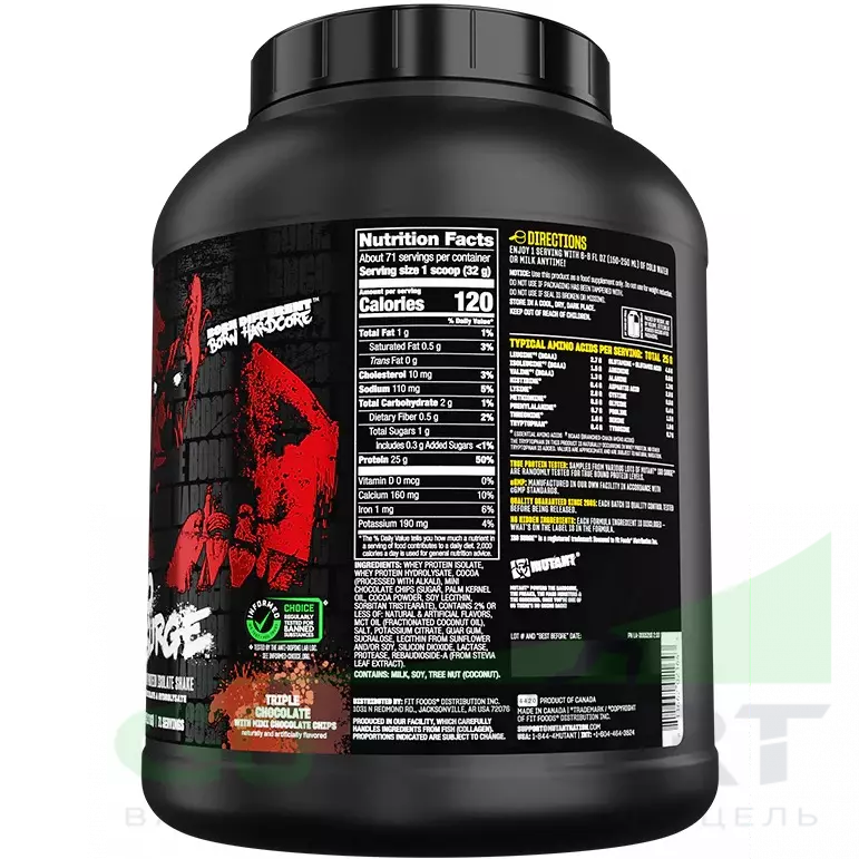 Формула Iso Surge от Mutant разработана на основе быстро действующих сывороточного изолята и сывороточного гидролизата. Данные белки имеют полный аминокислотный профиль и высокую биологическую ценность. Поэтому потребляя их, вы сможете поставлять строительный материал в мышцы за короткий промежуток времени, что необходимо до и после тренировки для предупреждения катаболических процессов и поддержания мышечного роста. К тому же вы поддержите восстановление своего организма, что лучше подготовит его к следующей тренировке. В каждой порции данного протеина содержится 25 г белка и по 1 г жиров и углеводов, поэтому его можно применять во время сушки или диеты.