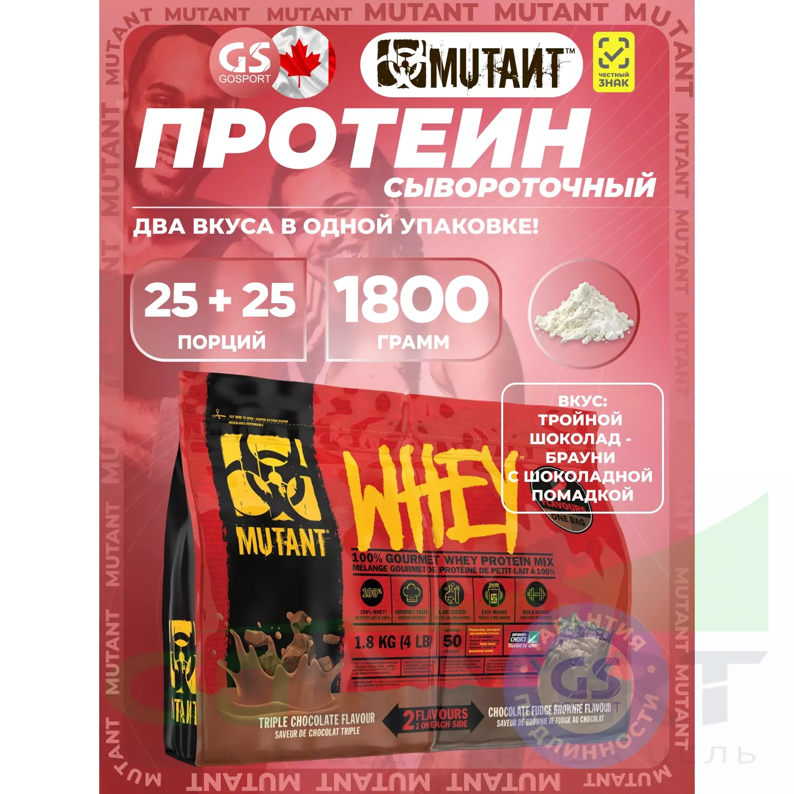 Mutant Whey 1800 г, Тройной Шоколад - Брауни с Шоколадной Помадкой — Для набора мышечной массы и восстановления