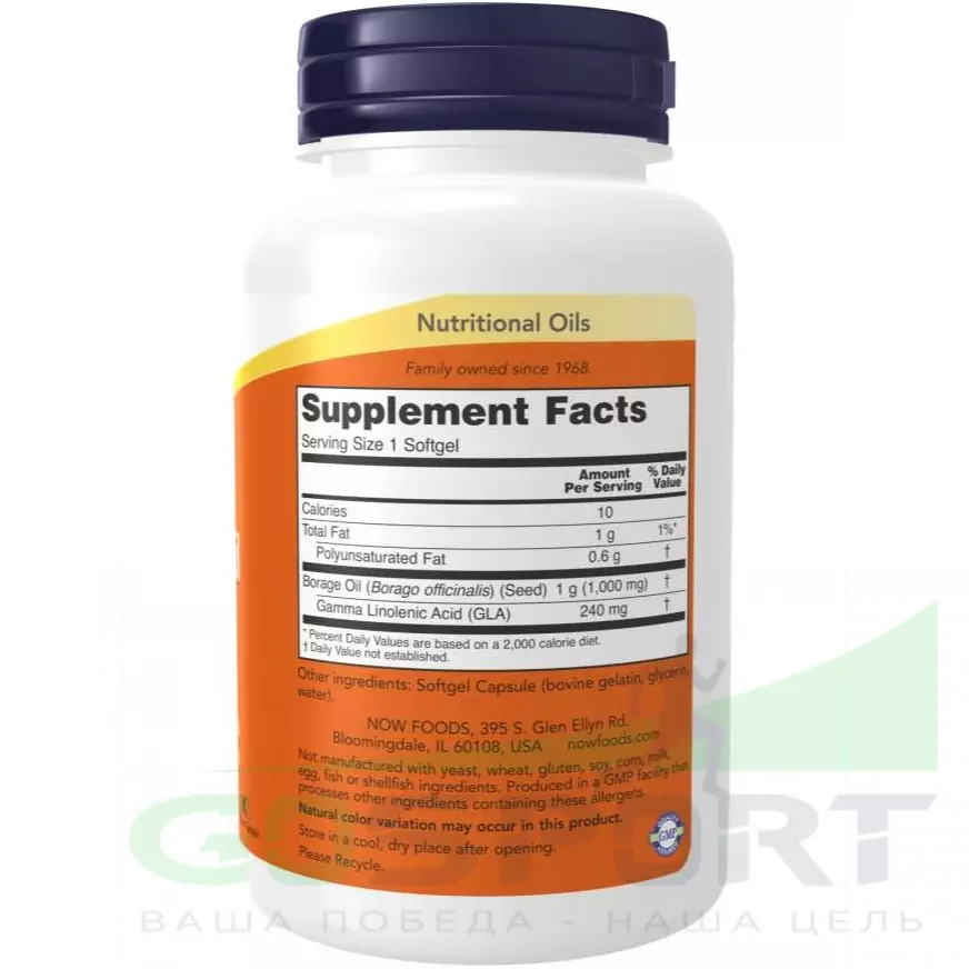 Масло огуречника — это питательное масло, состоящее на 60% из полиненасыщенных жиров и примерно в два раза превышающее среднее содержание гамма-линоленовой кислоты (ГЛК) по сравнению с маслом примулы вечерней. ГЛК — это незаменимая жирная кислота, которую организм может вырабатывать из пищевой линолевой кислоты; однако его можно более эффективно использовать для функций организма, если он поступает непосредственно из пищевых источников. Исследования показали, что масло огуречника не содержит вредных уровней пирролизидиновых алкалоидов (ПА). Масло огуречника NOW производится методом экспеллерного прессования и не содержит гексана.
