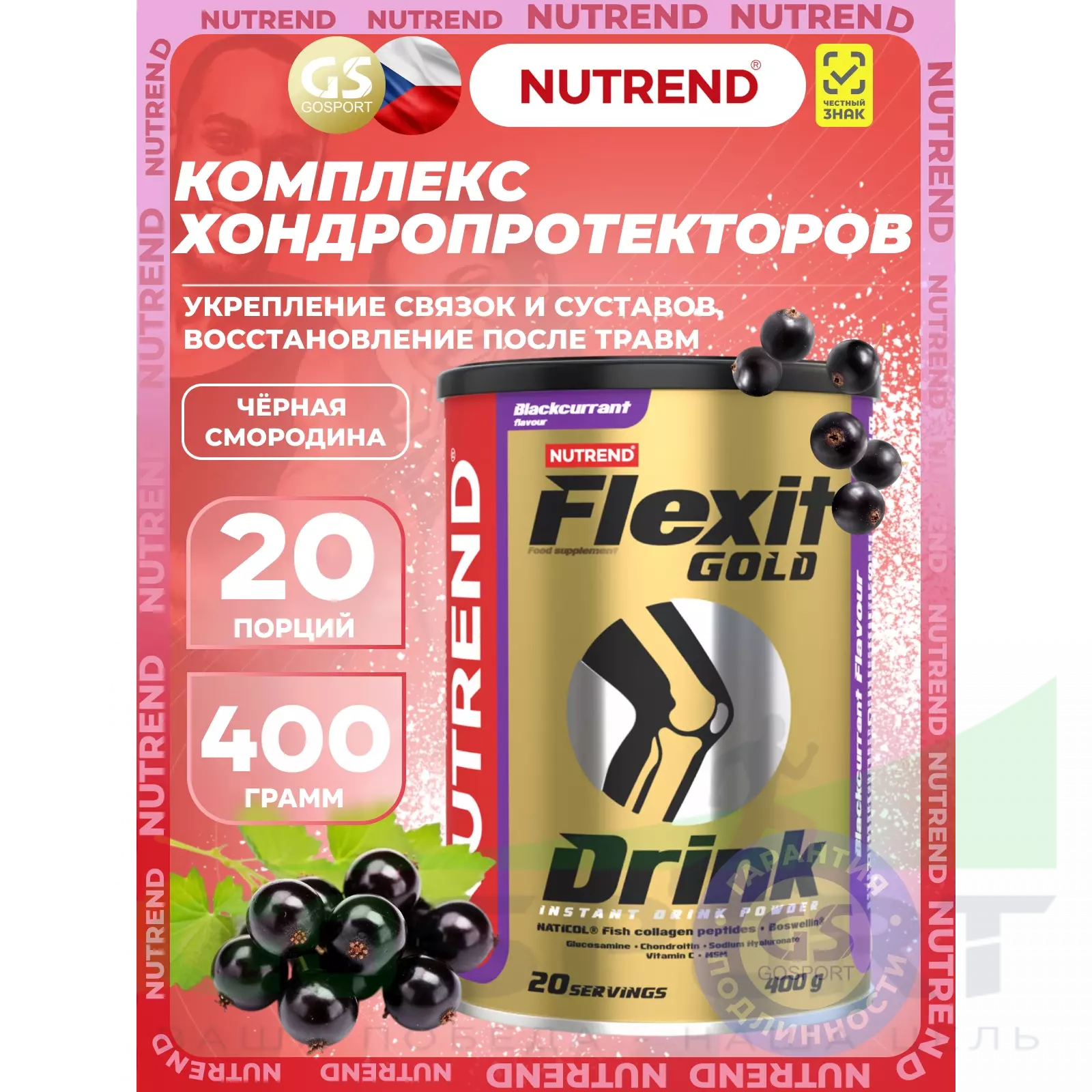 NUTREND Flexit Gold Drink 400 г, Черная смородина — Для укрепления связок и суставов
