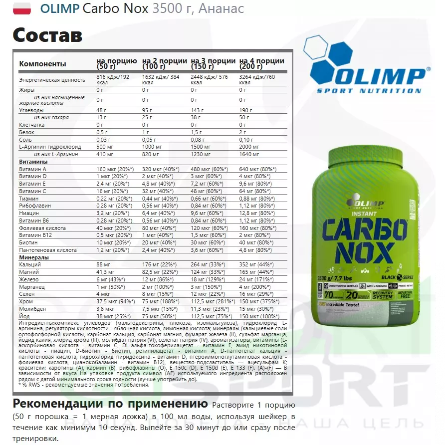 OLIMP Carbo Nox 3500 г, Ананас — Энергия, выносливость, пампинг, восстановление