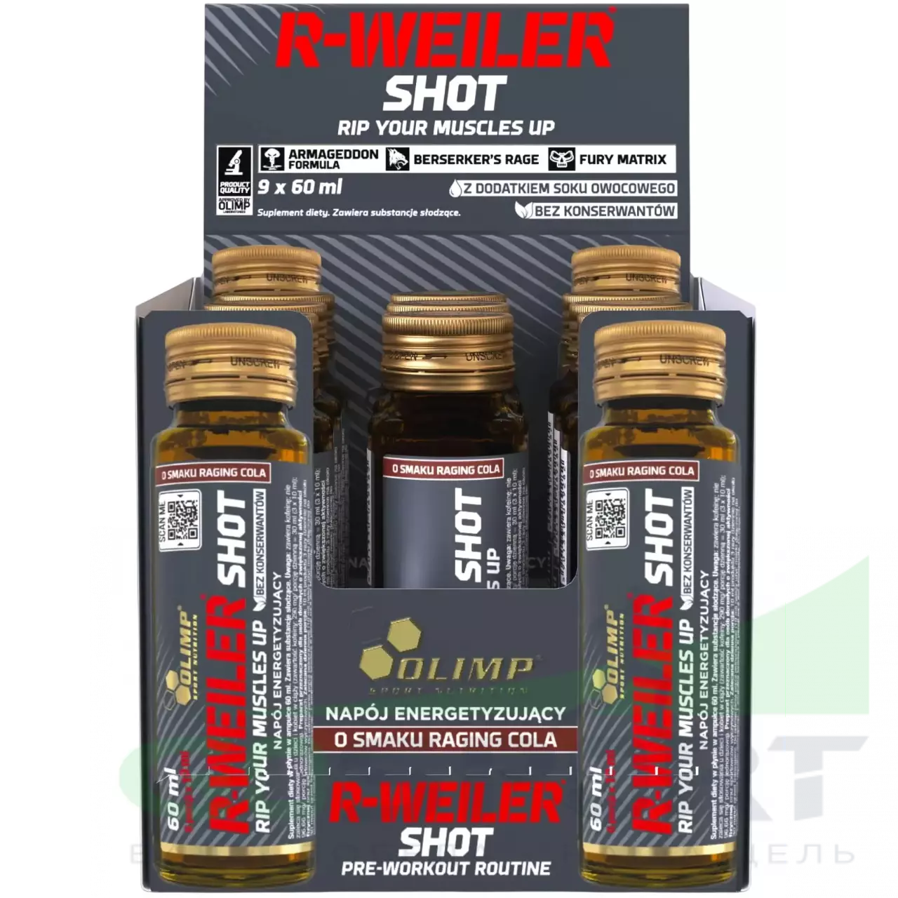 OLIMP R-Weiler Shot 9 x 60 мл, Взрывная кола — Энергия, выносливость, концентрация, пампинг