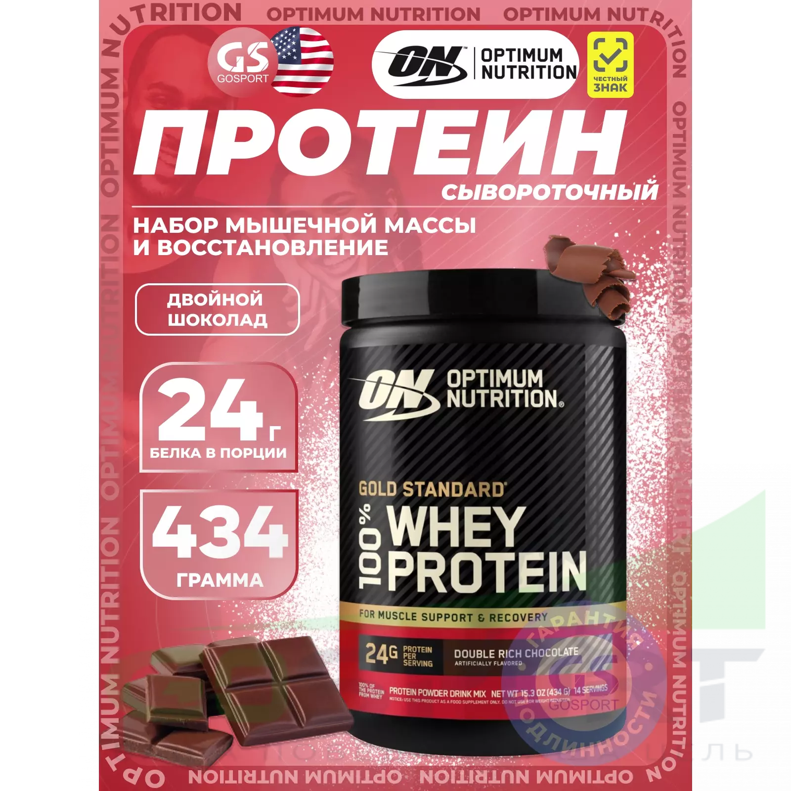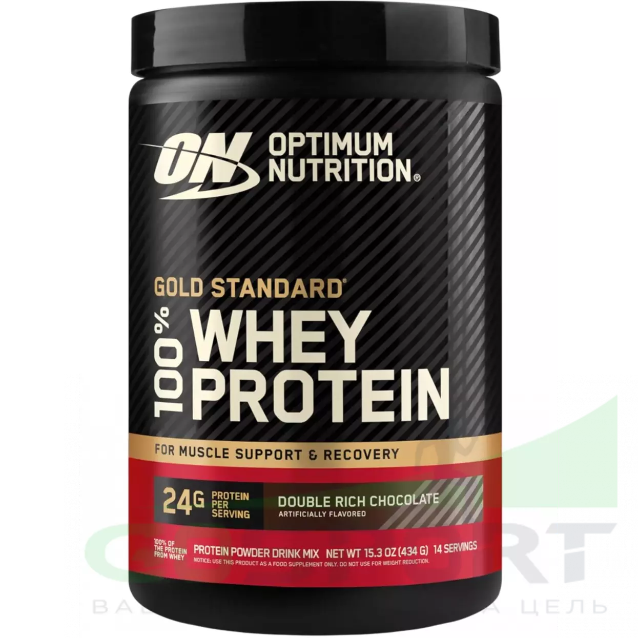 Optimum Nutrition 100% Whey Protein Gold Standard 434 г, Двойной шоколад — Набор мышечной массы и восстановление