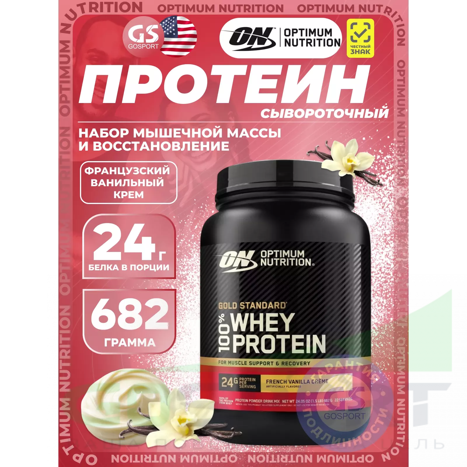 Optimum Nutrition 100% Whey Protein Gold Standard 682 г, Французский ванильный крем — Набор мышечной массы и восстановление