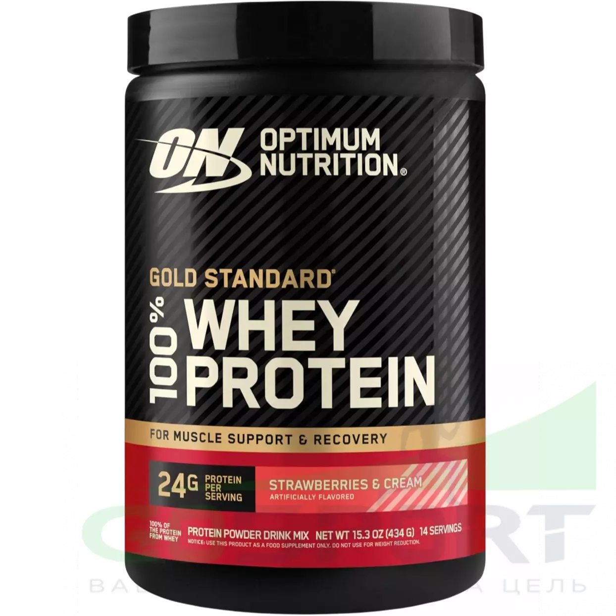 Optimum Nutrition 100% Whey Protein Gold Standard 434 г, Клубника со сливками — Набор мышечной массы и восстановление