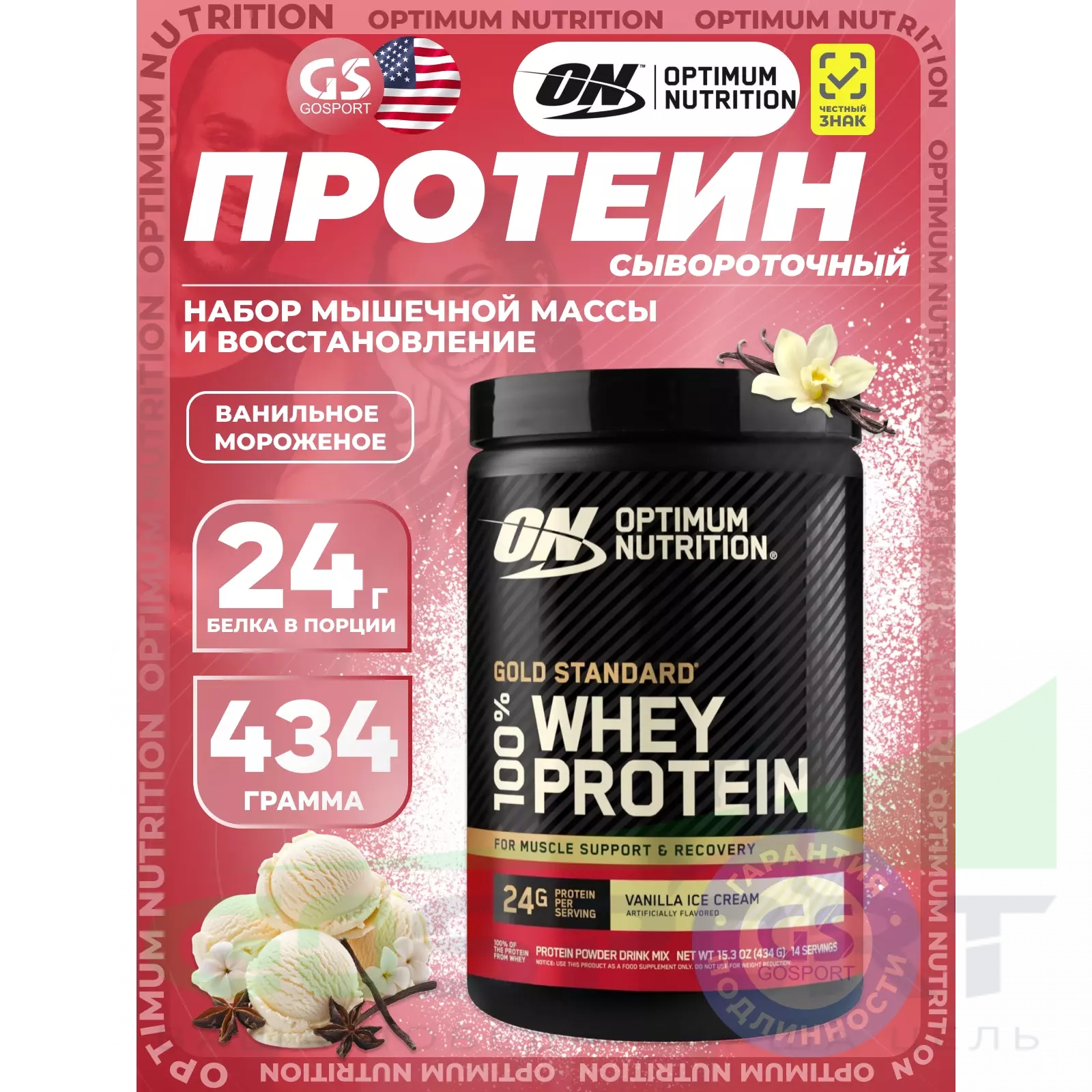 Optimum Nutrition 100% Whey Protein Gold Standard 434 г, Ванильное мороженое — Набор мышечной массы и восстановление