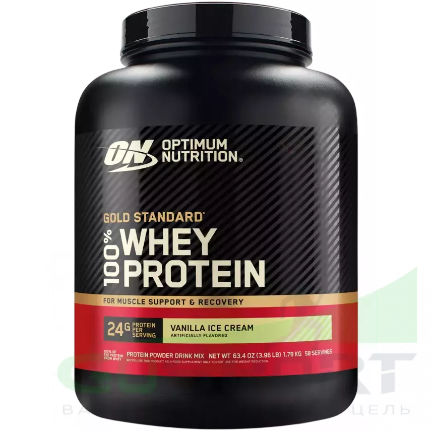 Optimum Nutrition 100% Whey Protein Gold Standard 1790 г, Ванильное мороженое — Набор мышечной массы и восстановление